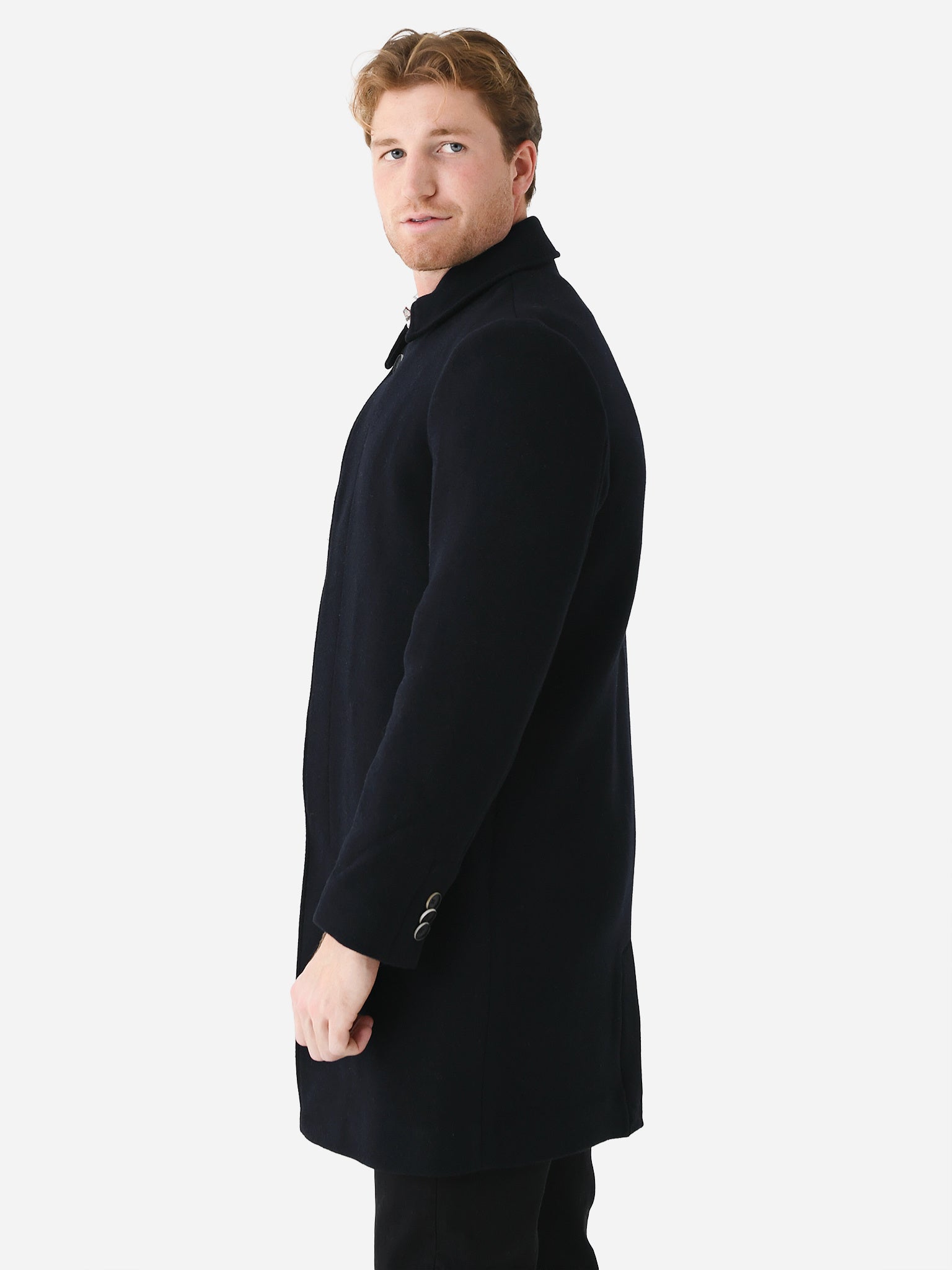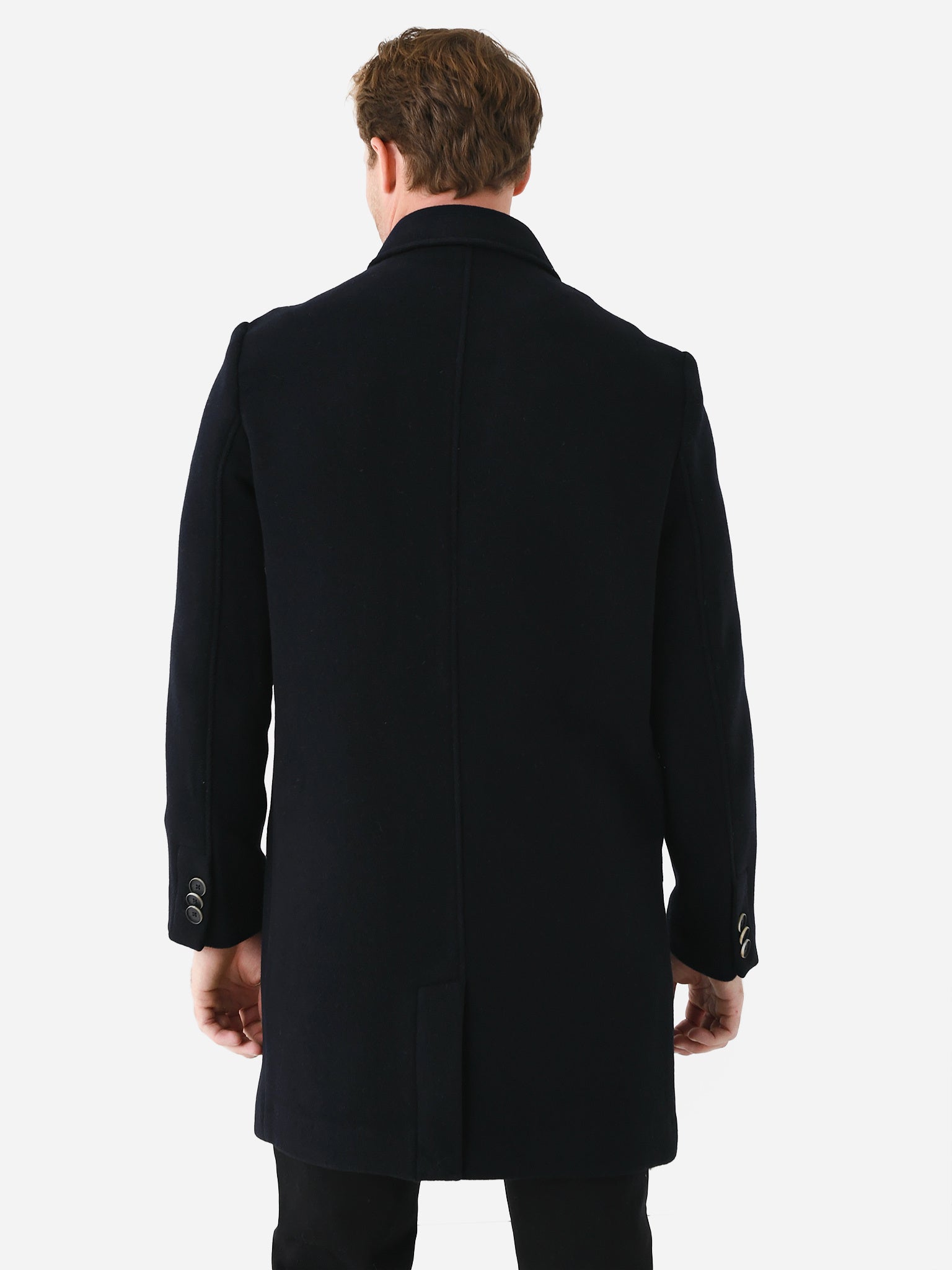 Long overcoat made from premium recycled materials.