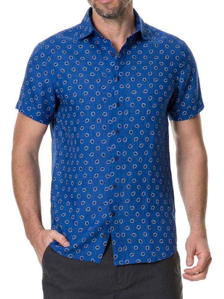 The Rodd and Gunn Westerham Sports Fit Shirt features a geometric leaf print on a linen fabric.