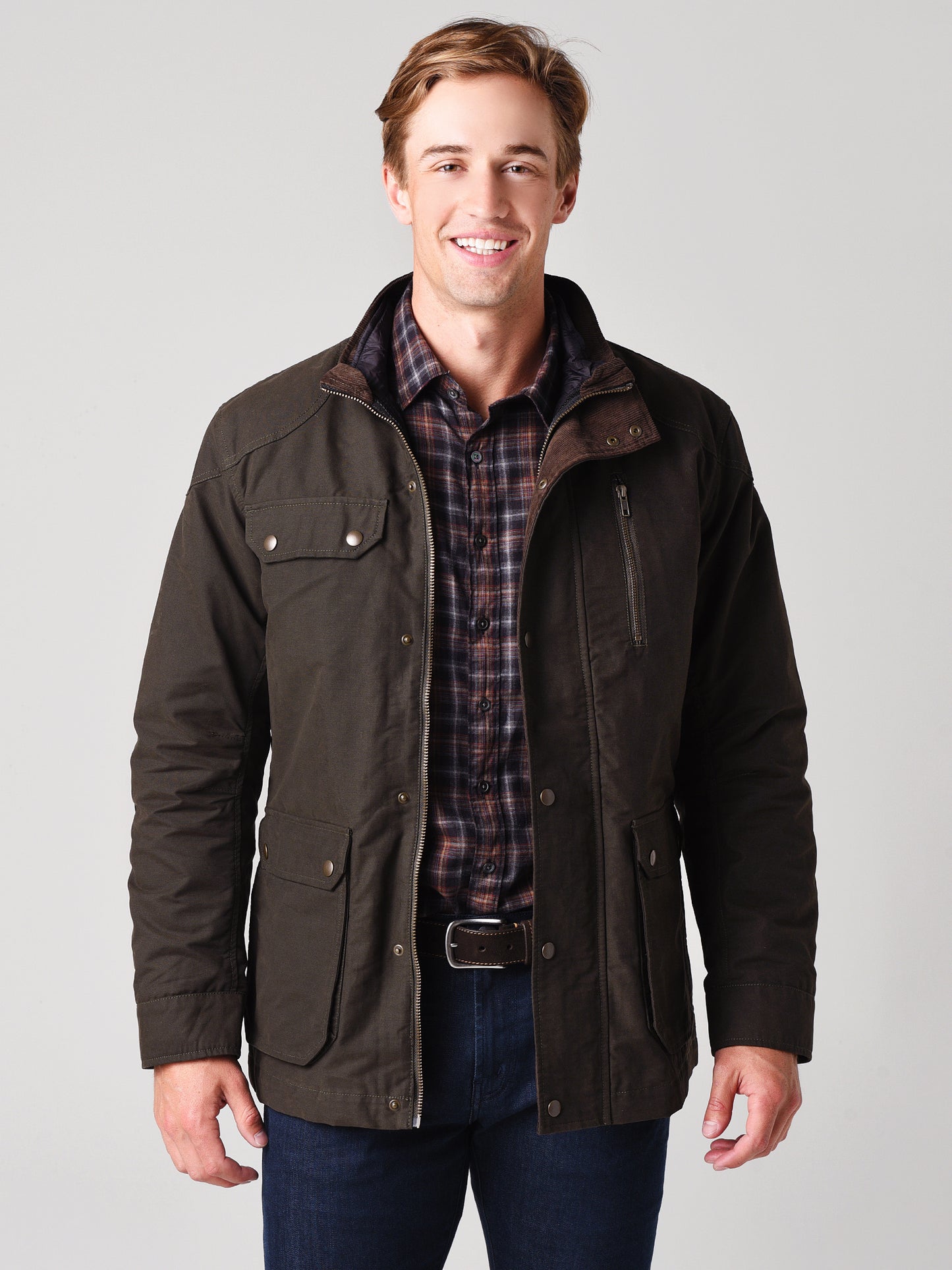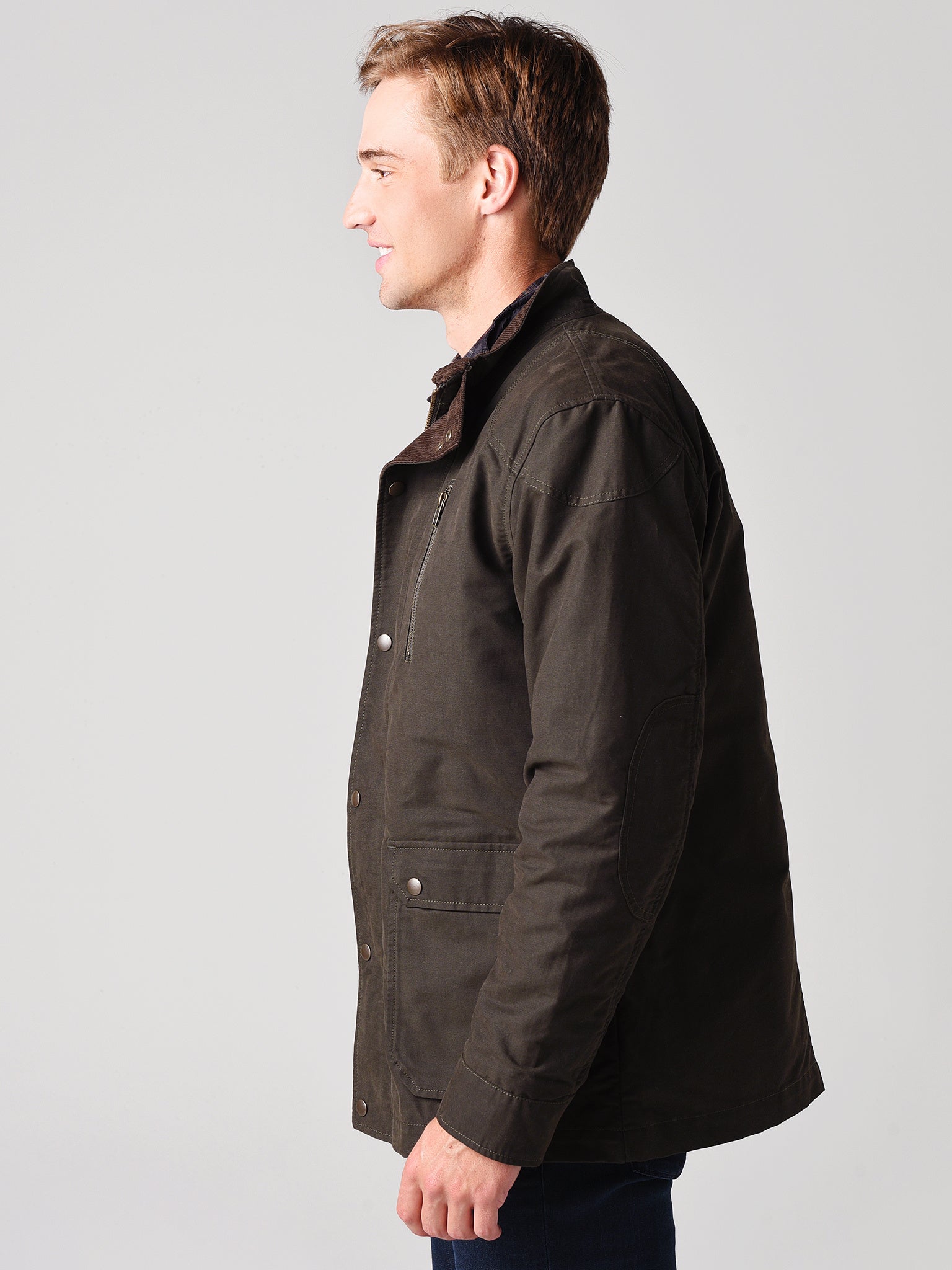 - Outer jacket: Inside neck and front zip storm flap in corduroy trim