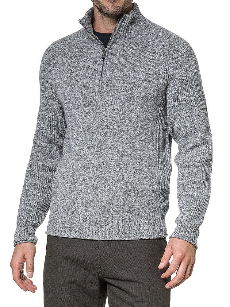 Chunk y shawl neck knit in extra fine Lambswool. A heathered knit in mid gauge, this knit can be worn as outerwear or as a mid-layer. Featuring sporty details such as the rib sleeves, raglan armholes and zip front neck.