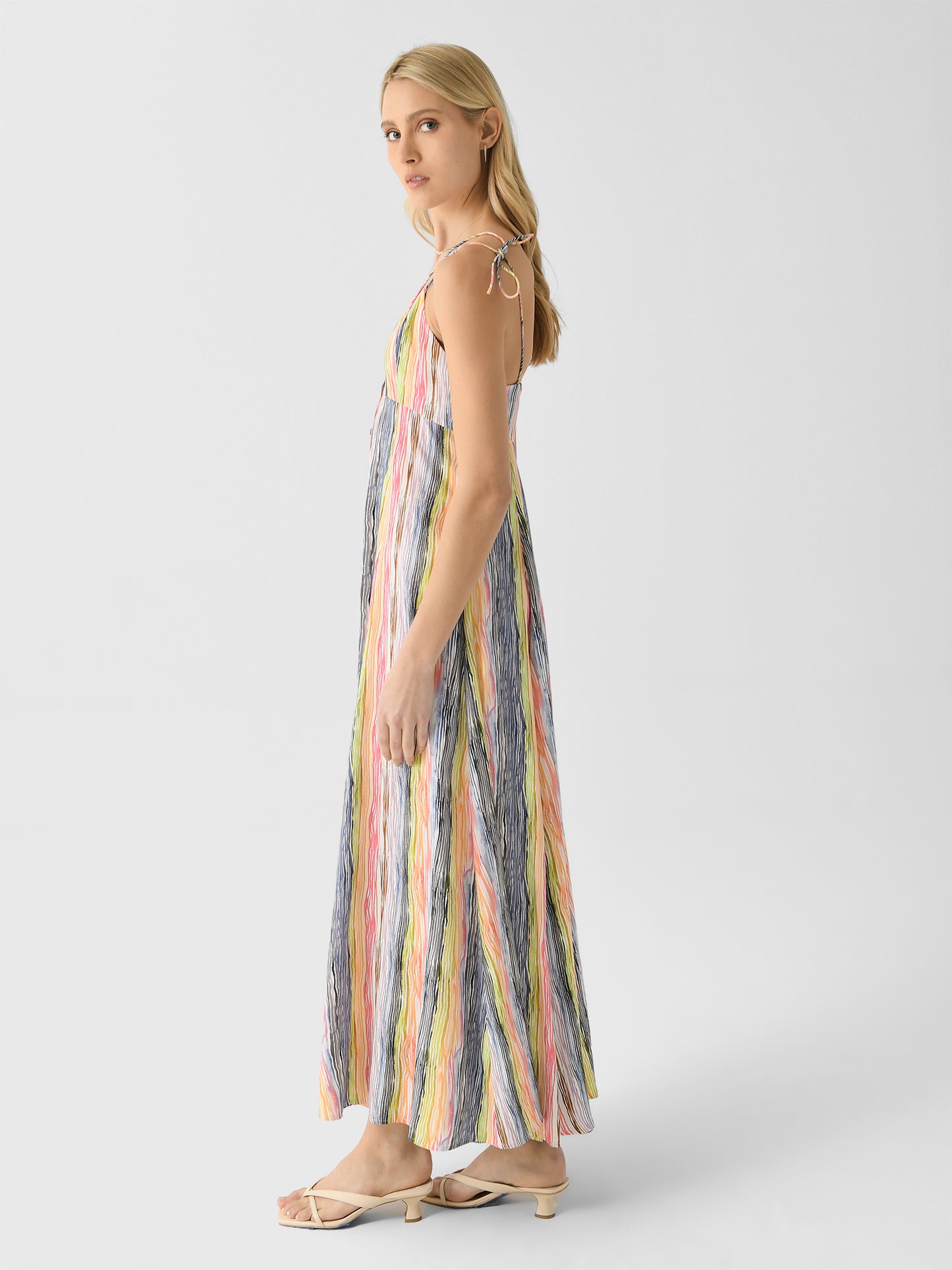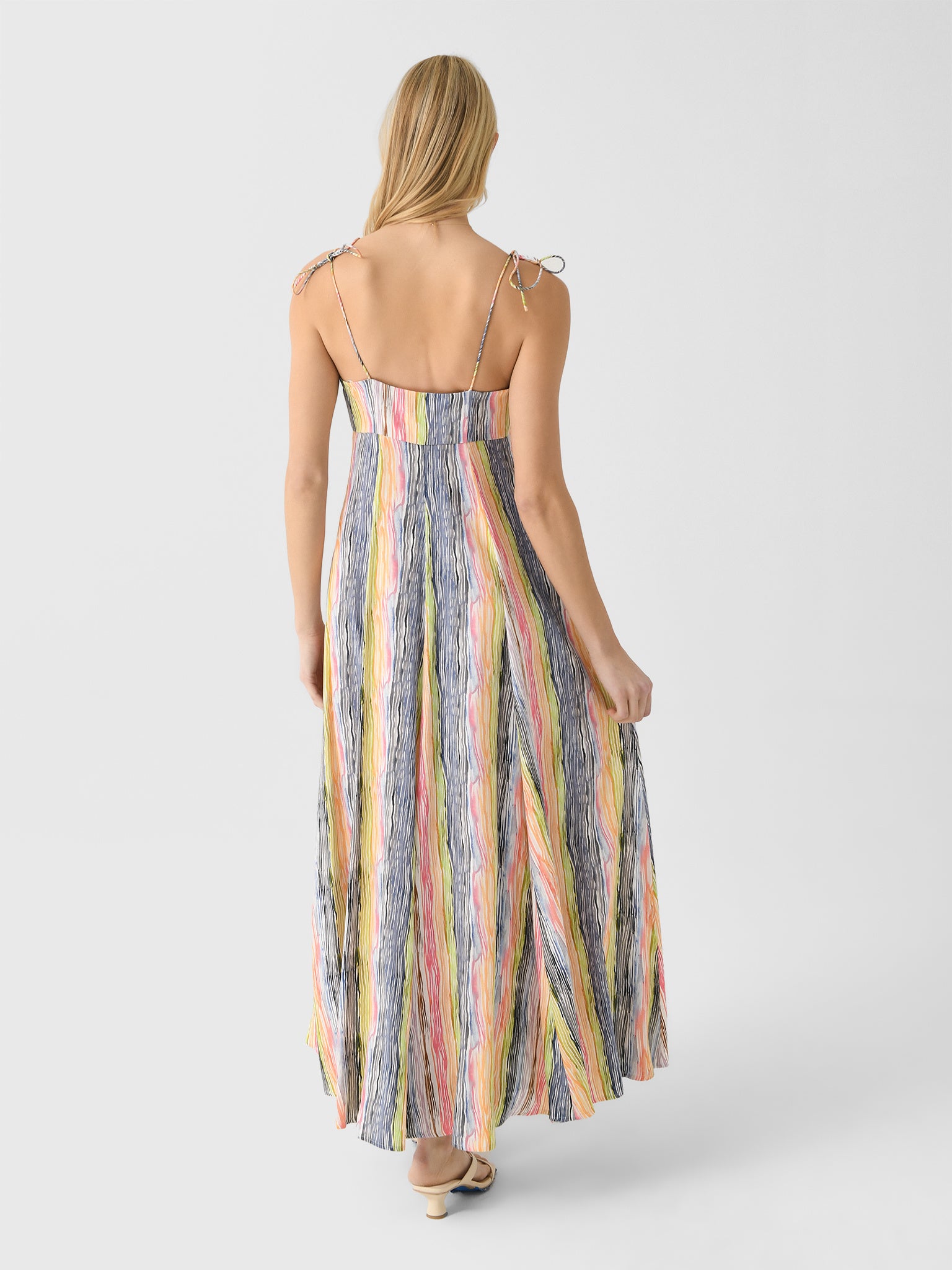 This breezy dress is perfect for warm weather occasions. It features a fitted bodice, adjustable straps, and a flowing maxi skirt.