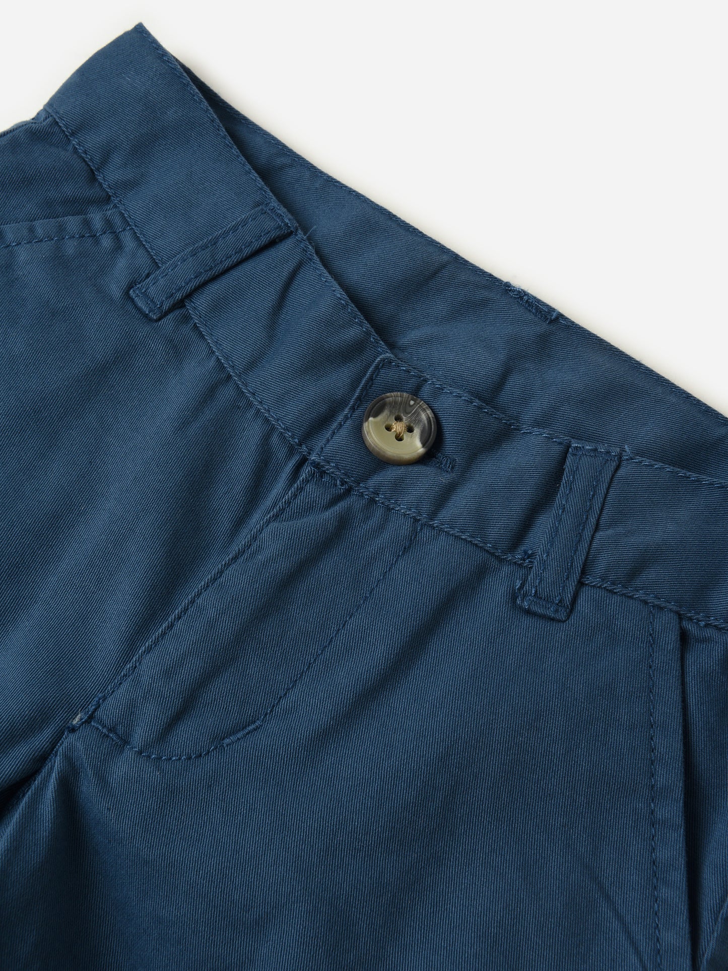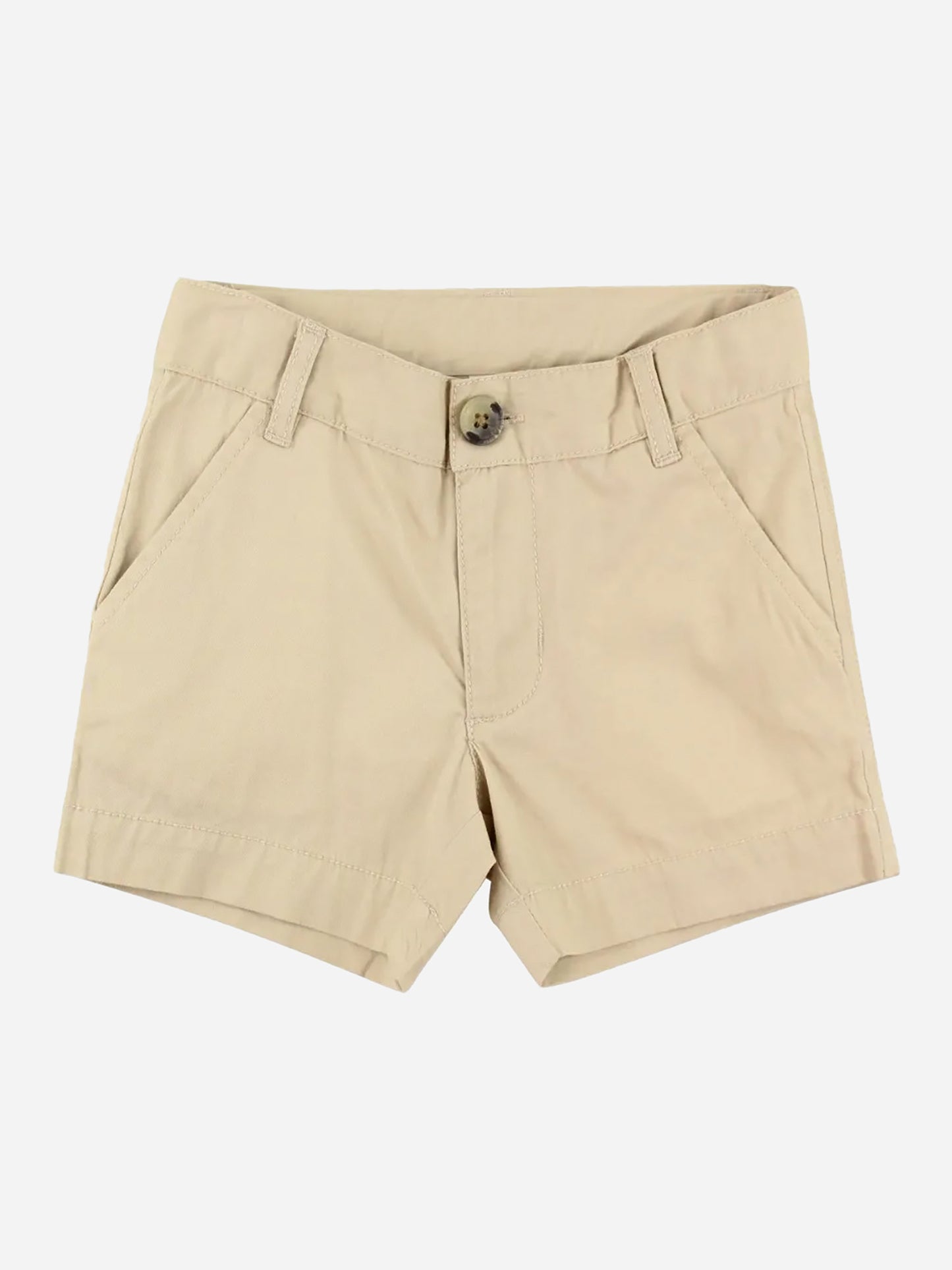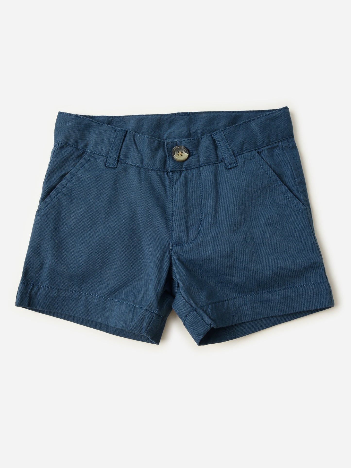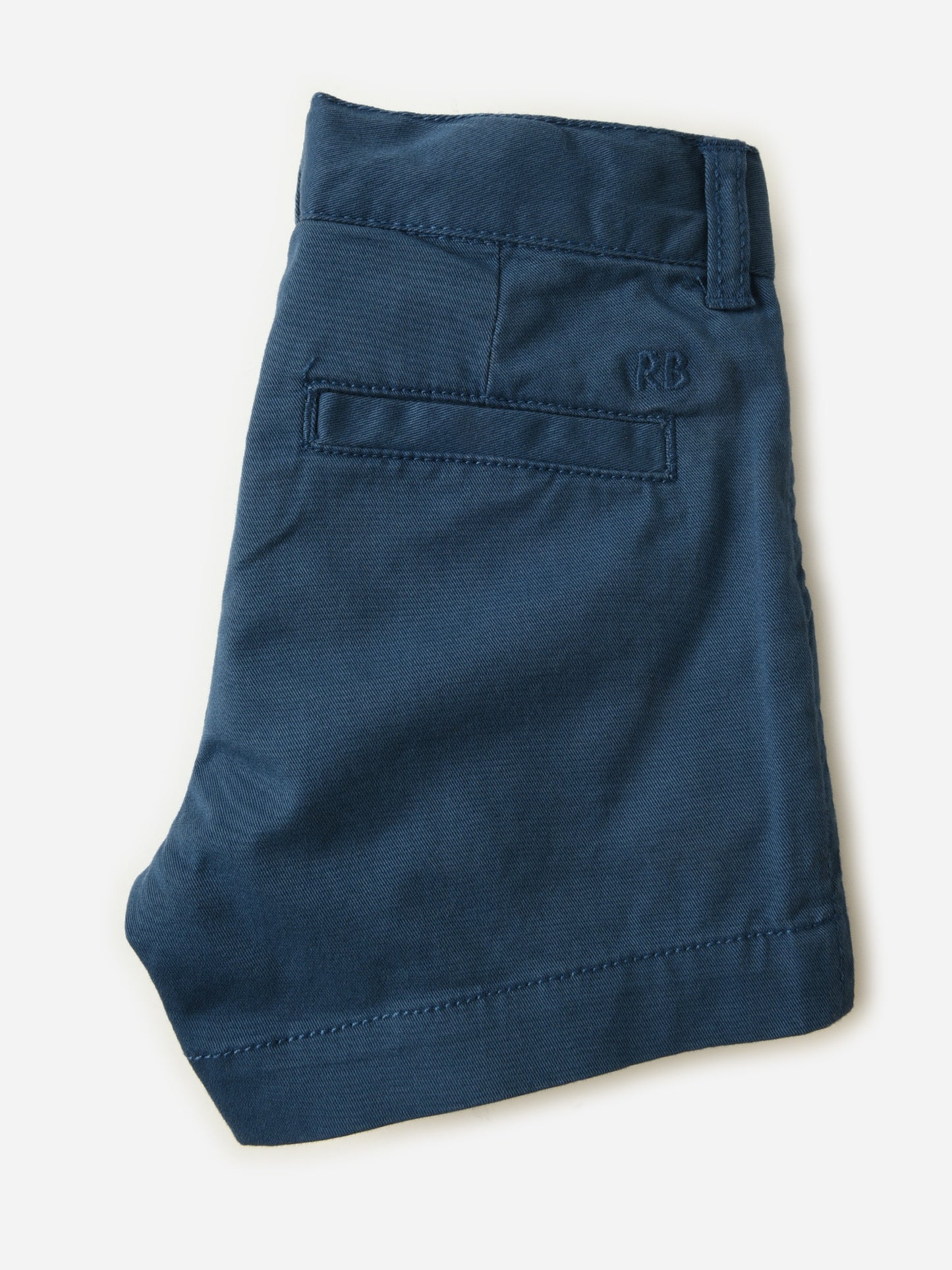 A comfortable stretch chino short with an adjustable elastic waistband.