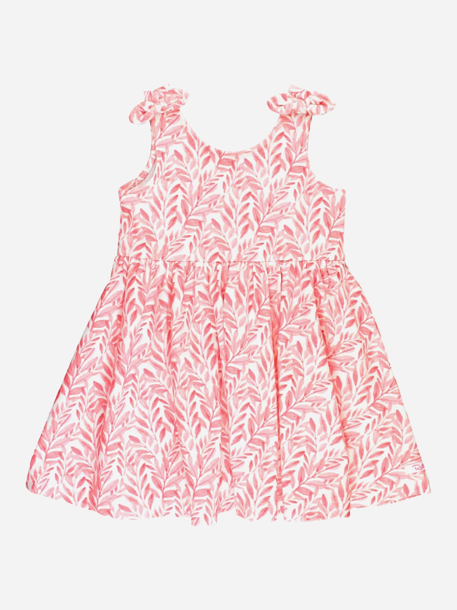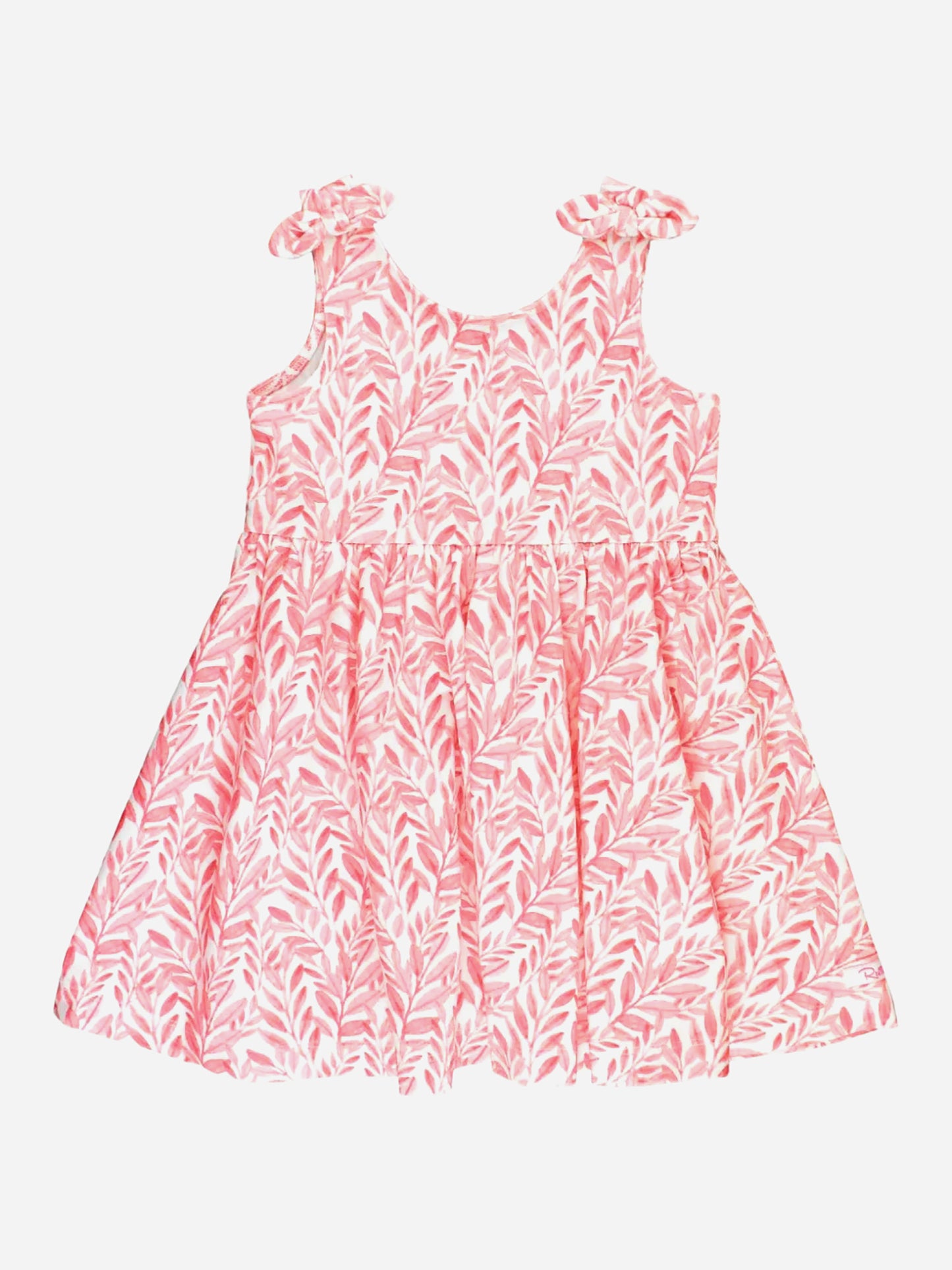 A printed swing-style dress constructed from soft, breathable knit fabric.