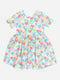 A soft knit short-sleeve dress with a full skirt and adorable novelty print.