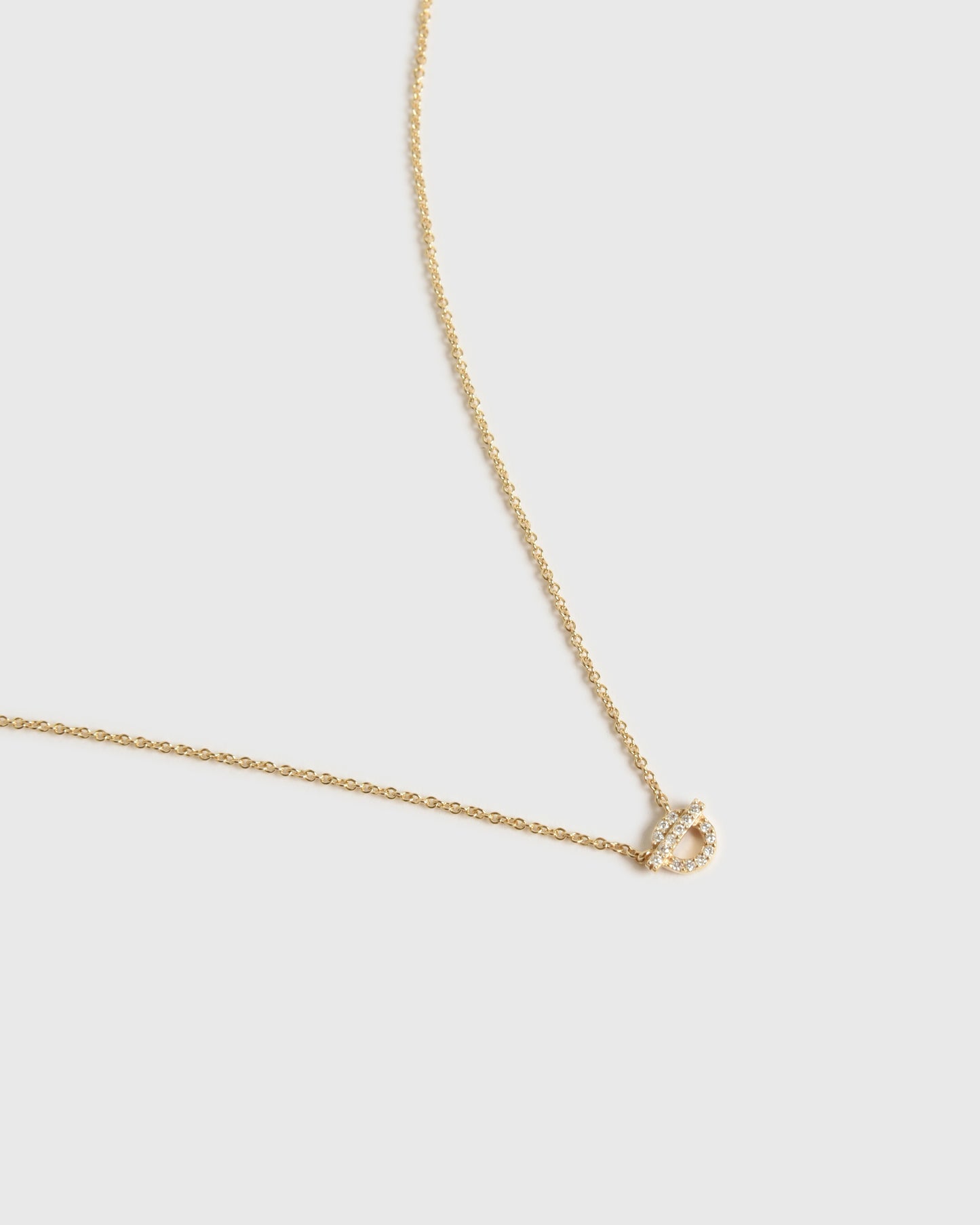 A 14-karat yellow gold necklace with a toggle pendant embellished with pavé diamonds.