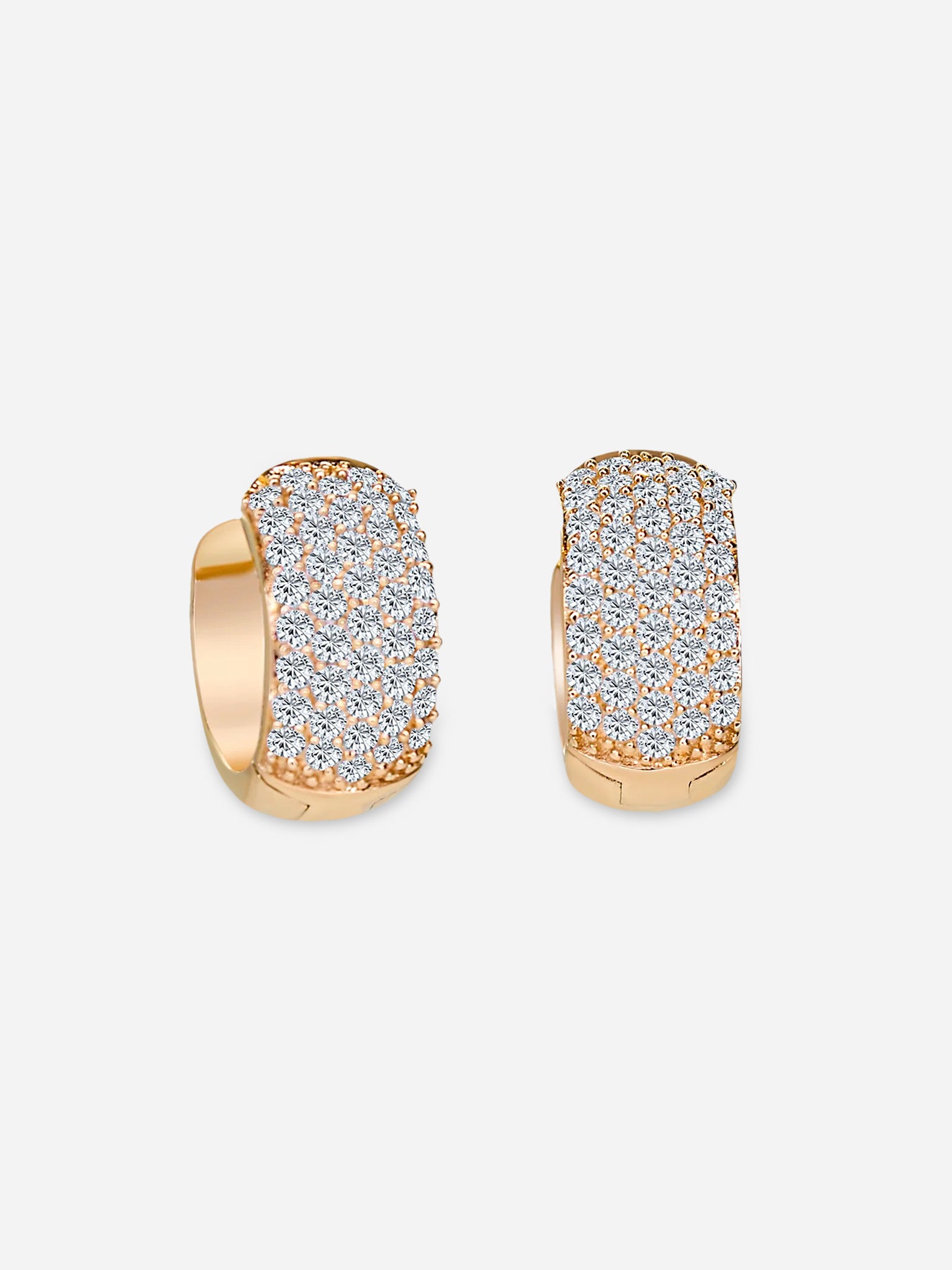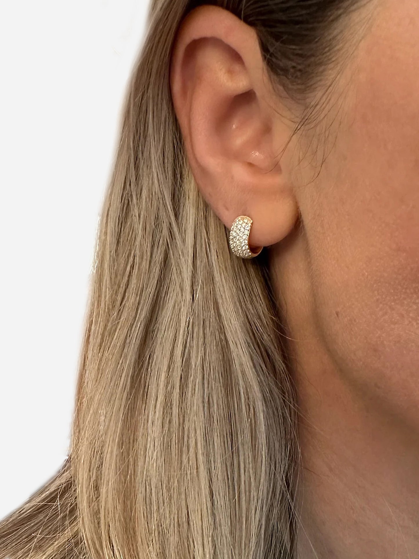 A pair of 14-karat yellow gold huggie earrings with pavé diamonds and a reversible design.