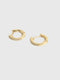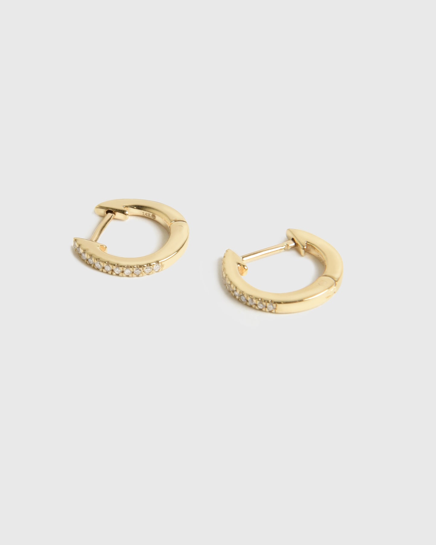 A dainty pair of gold huggie earrings with pavé diamonds.