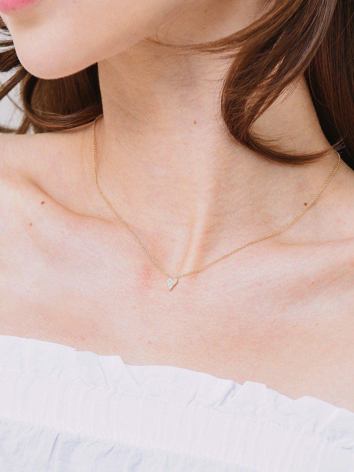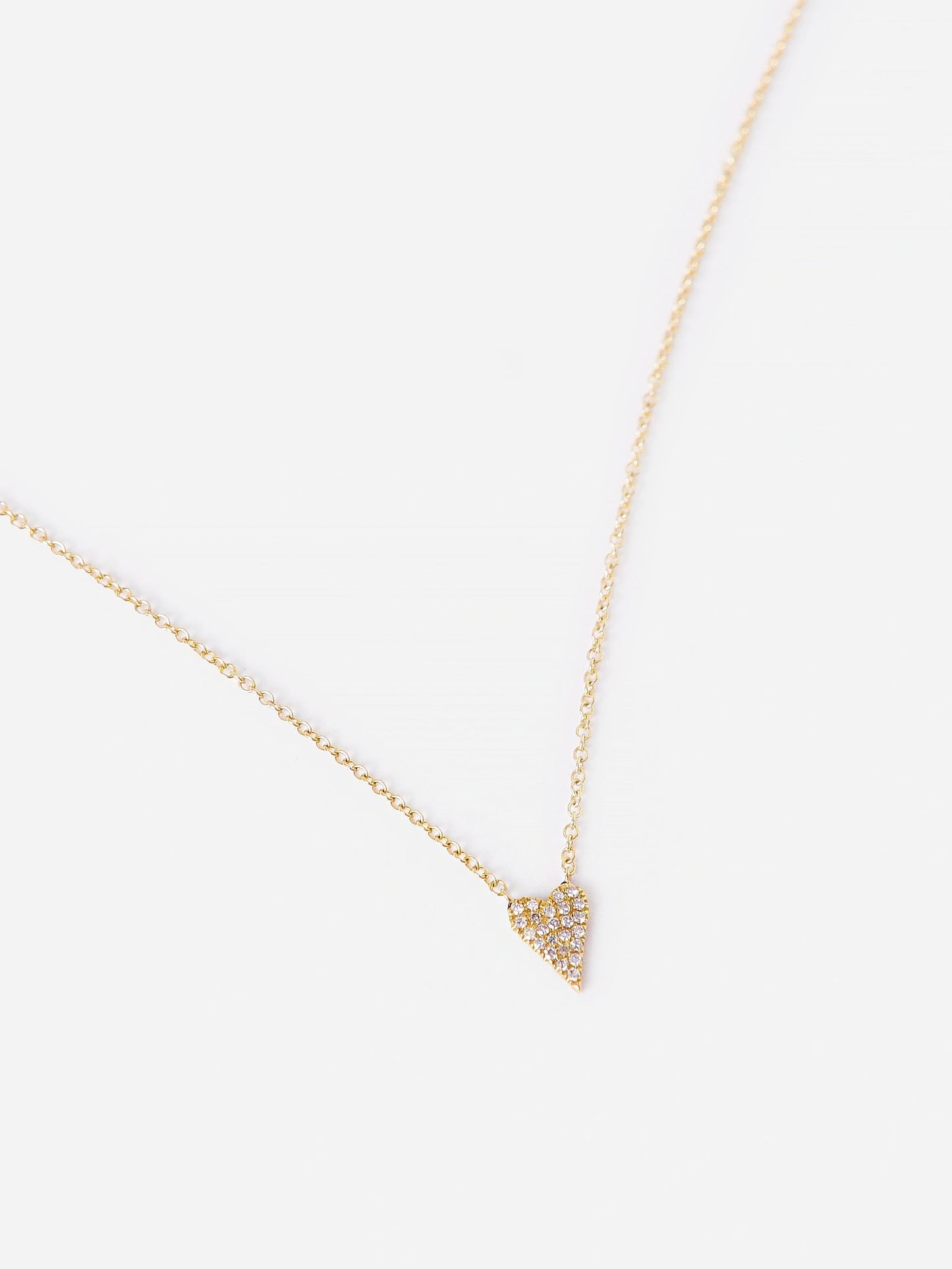 Dainty necklace with a diamond-encrusted mini heart pendant.
