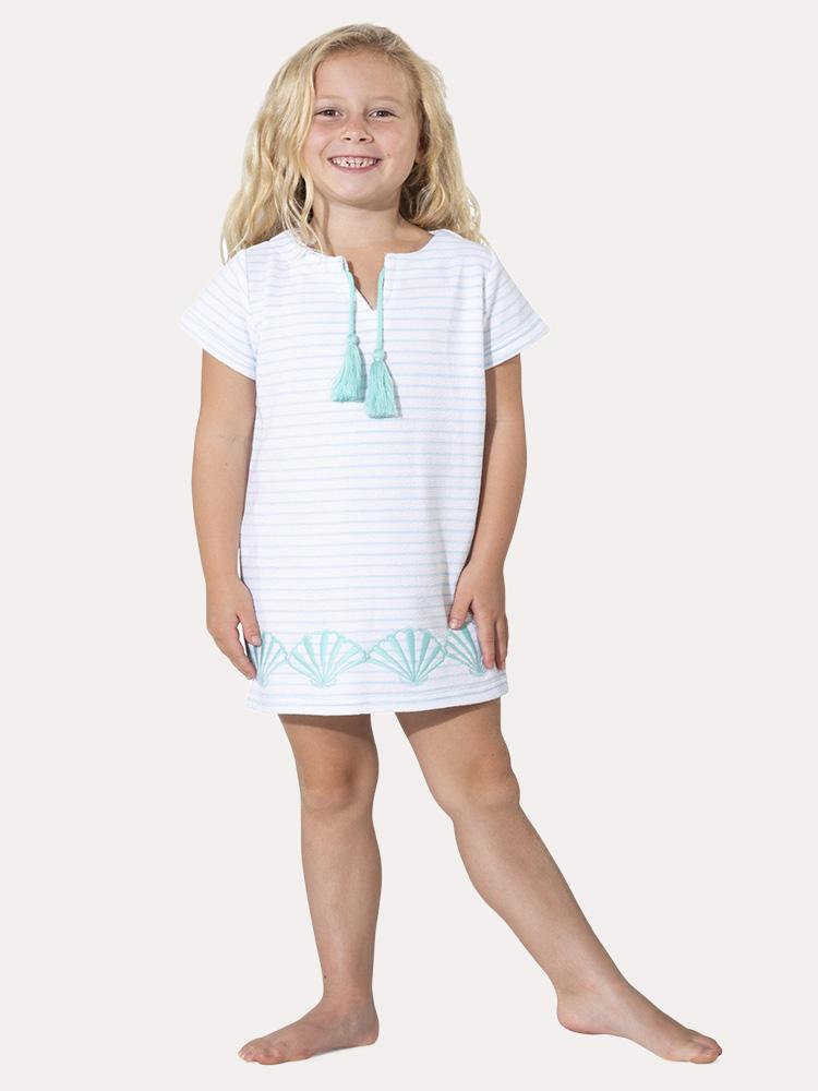 Her Favorite on deck cover-up will become the Sail To Sable Girls' Short Sleeve Terry Dress, with an adorable seashell motif around the bottom hem that'll have her feeling like the princess of the seas.
