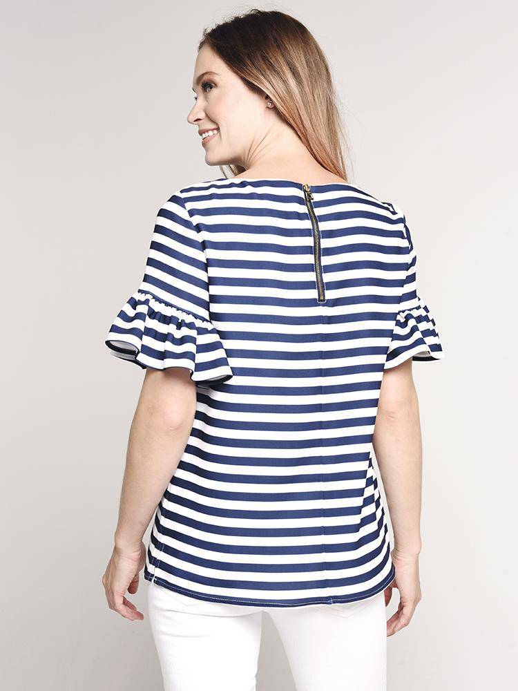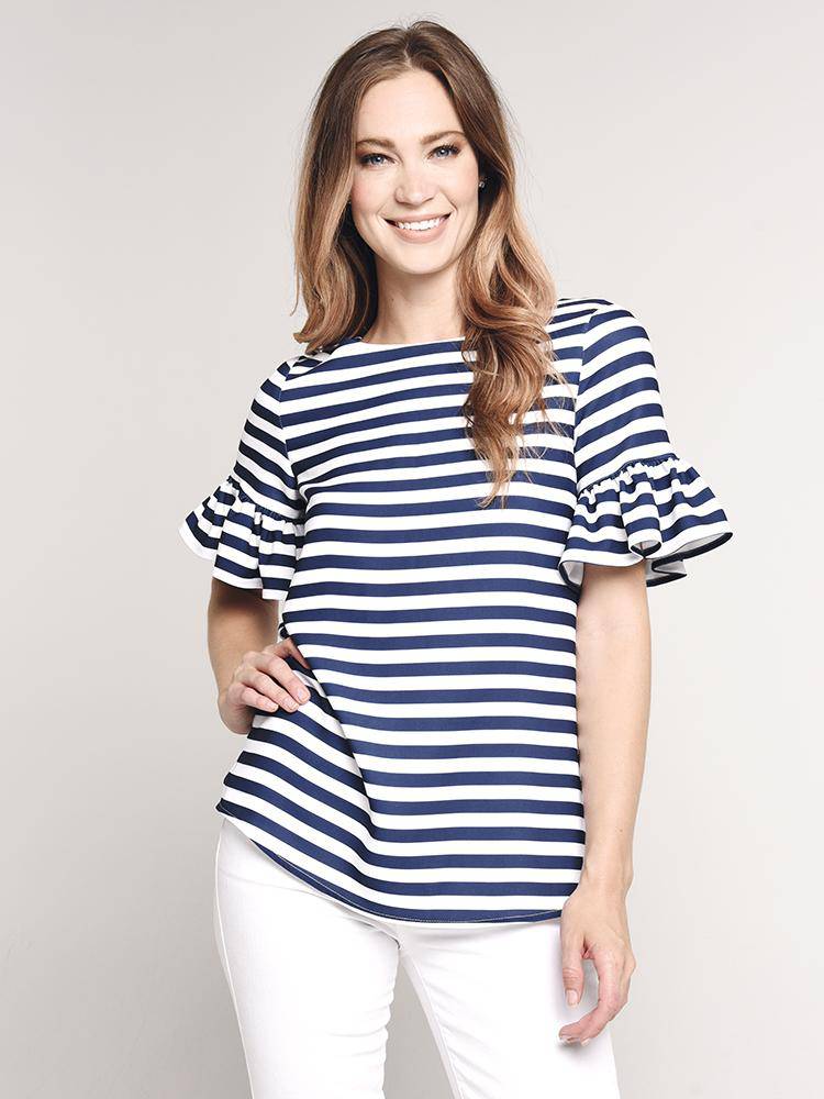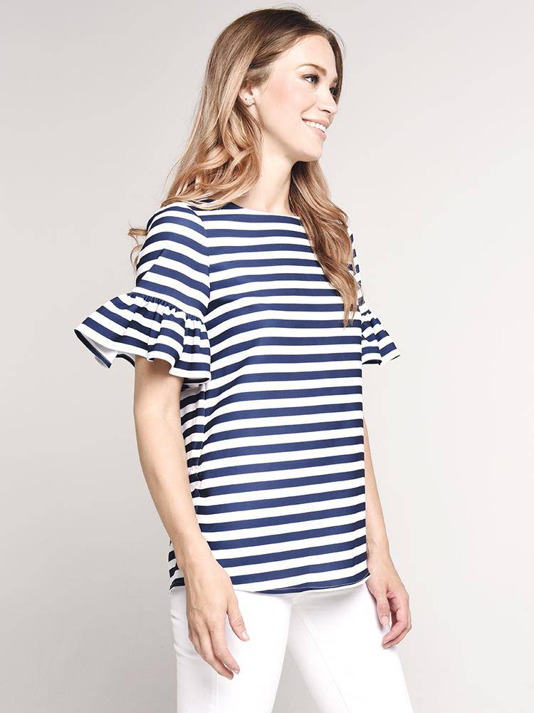 Put some prep in your step in the Sail to Sable Ruffle Sleeve Top .