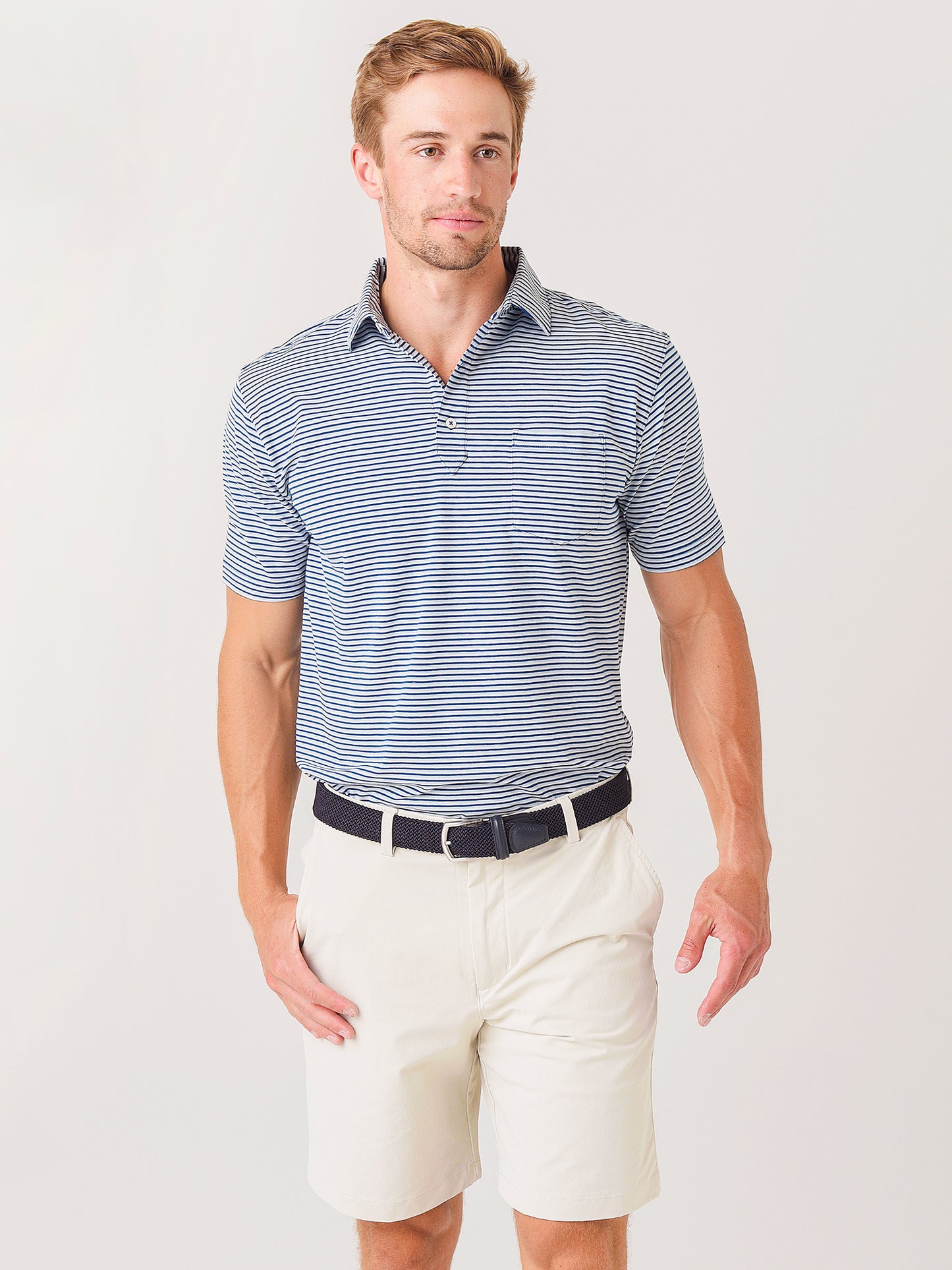 Look sharp and feel comfortable all-day Saint Bernard Men's Blake Stripe Pima-Blend Polo.
