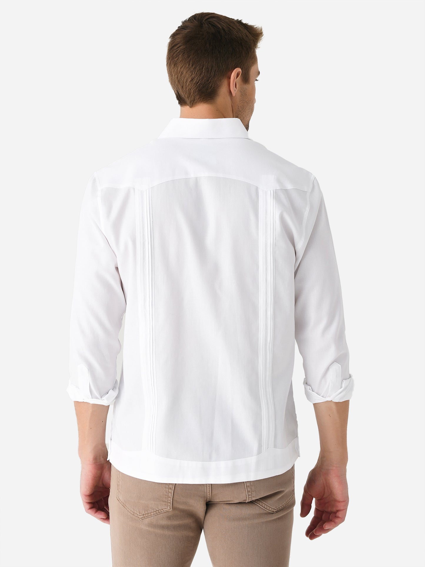 Men's Cotton Piqué Long Sleeve Guayabera Shirt