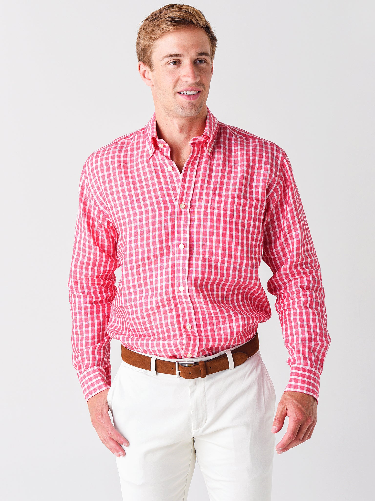 Saint Bernard Men's Linen Check Button-Down Shirt