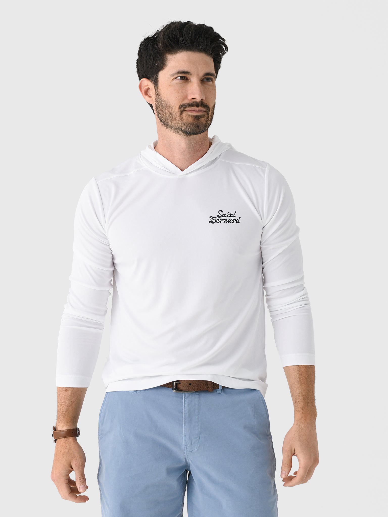 A lightweight hooded tee made from breathable performance fabric featuring Saint Bernard's custom Surf Club graphics.