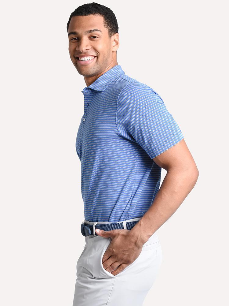 - Styled with Peter Millar shorts Style # MC0EB82. Model is wearing size medium shirt and size 32 shorts.