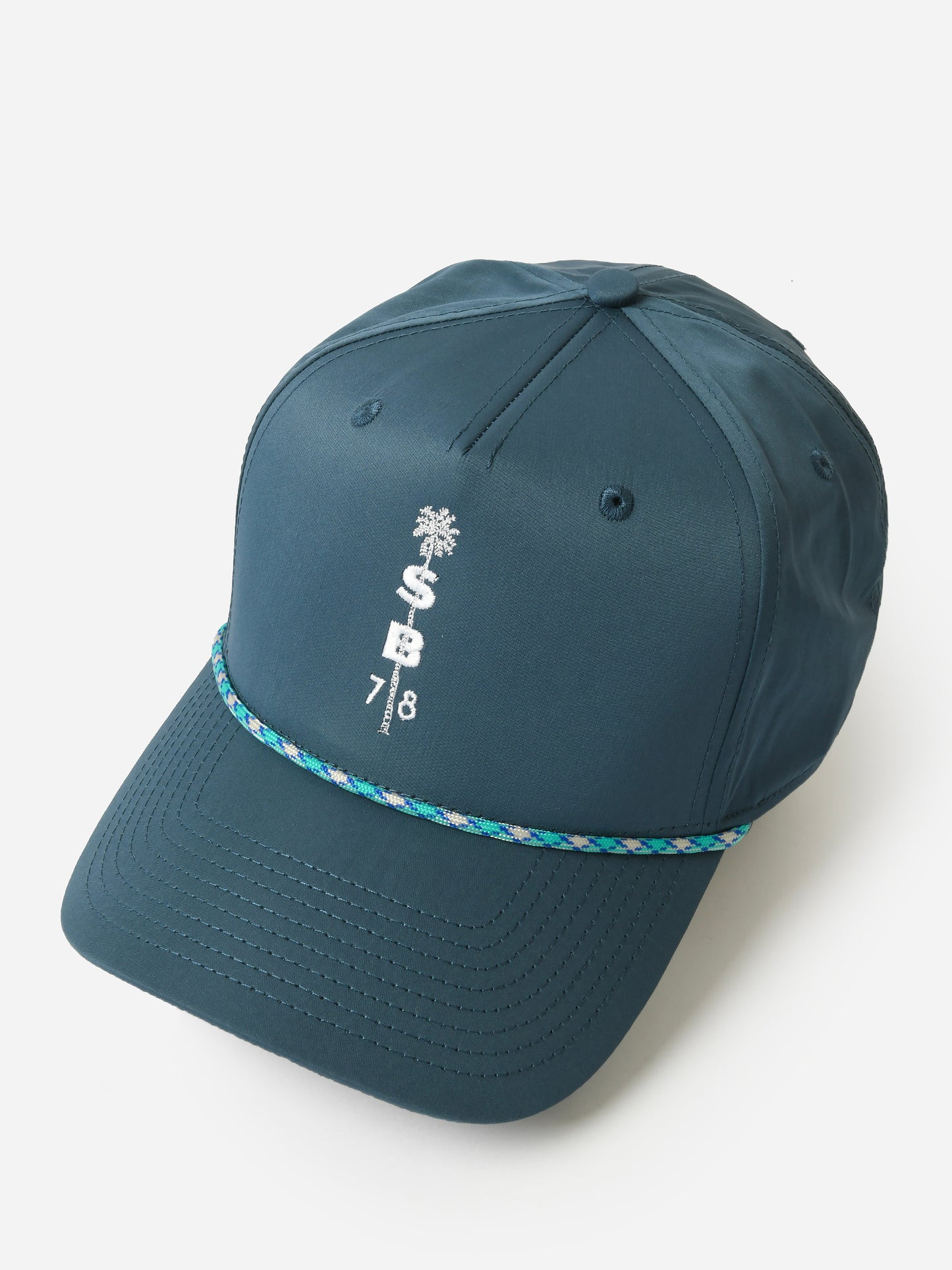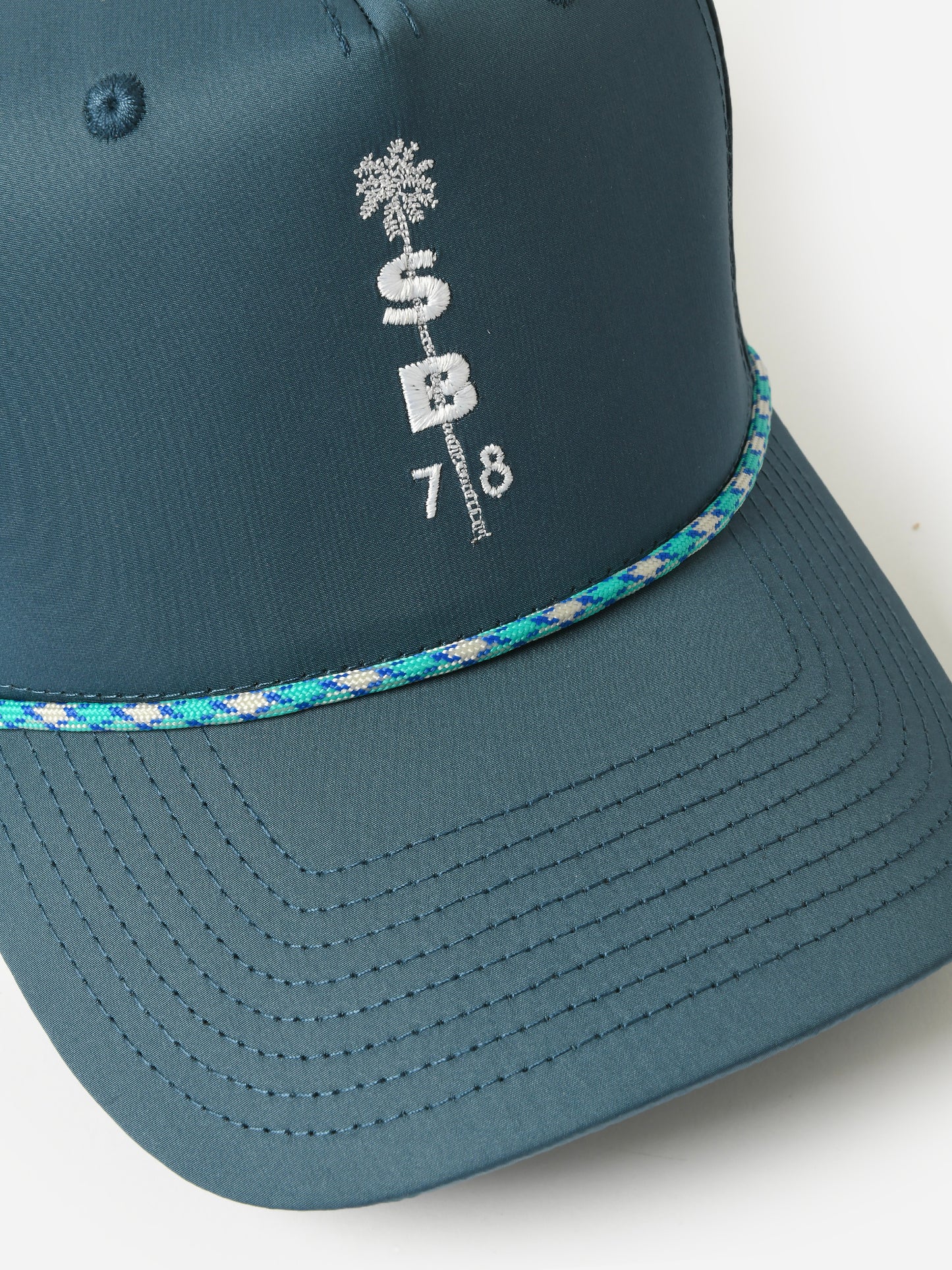 Breathable trucker hat featuring Saint Bernard's palm tree logo.