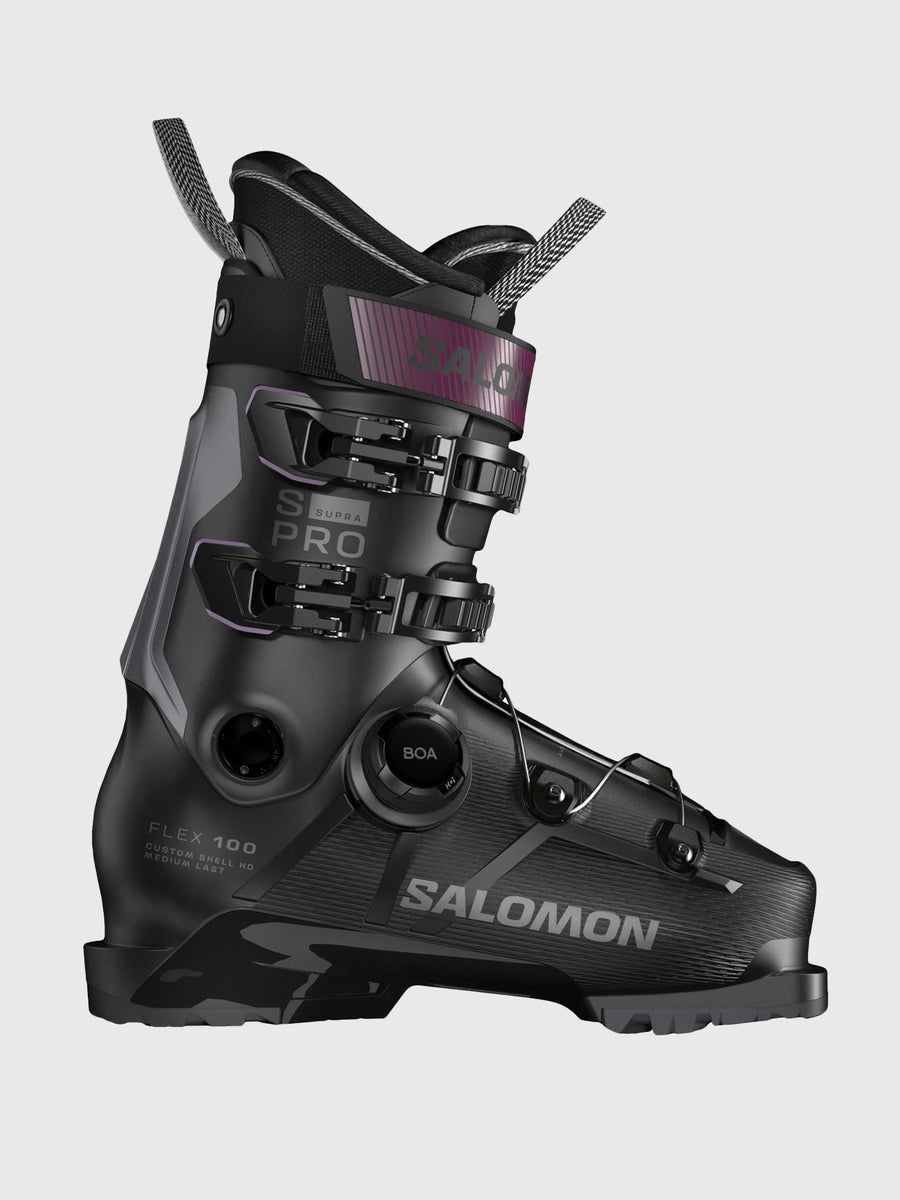 The Salomon S/Pro Supra BOA 100 Ski Boots give you the best of both worlds. They feature Salomon's effective Custom Shell HD heat molding technology, the incredibly comfortable BOA® Fit System for a precise fit, and a My Customfit 3D Performance liner. These boots have the perfect medium flex you want with all the latest technology you need.