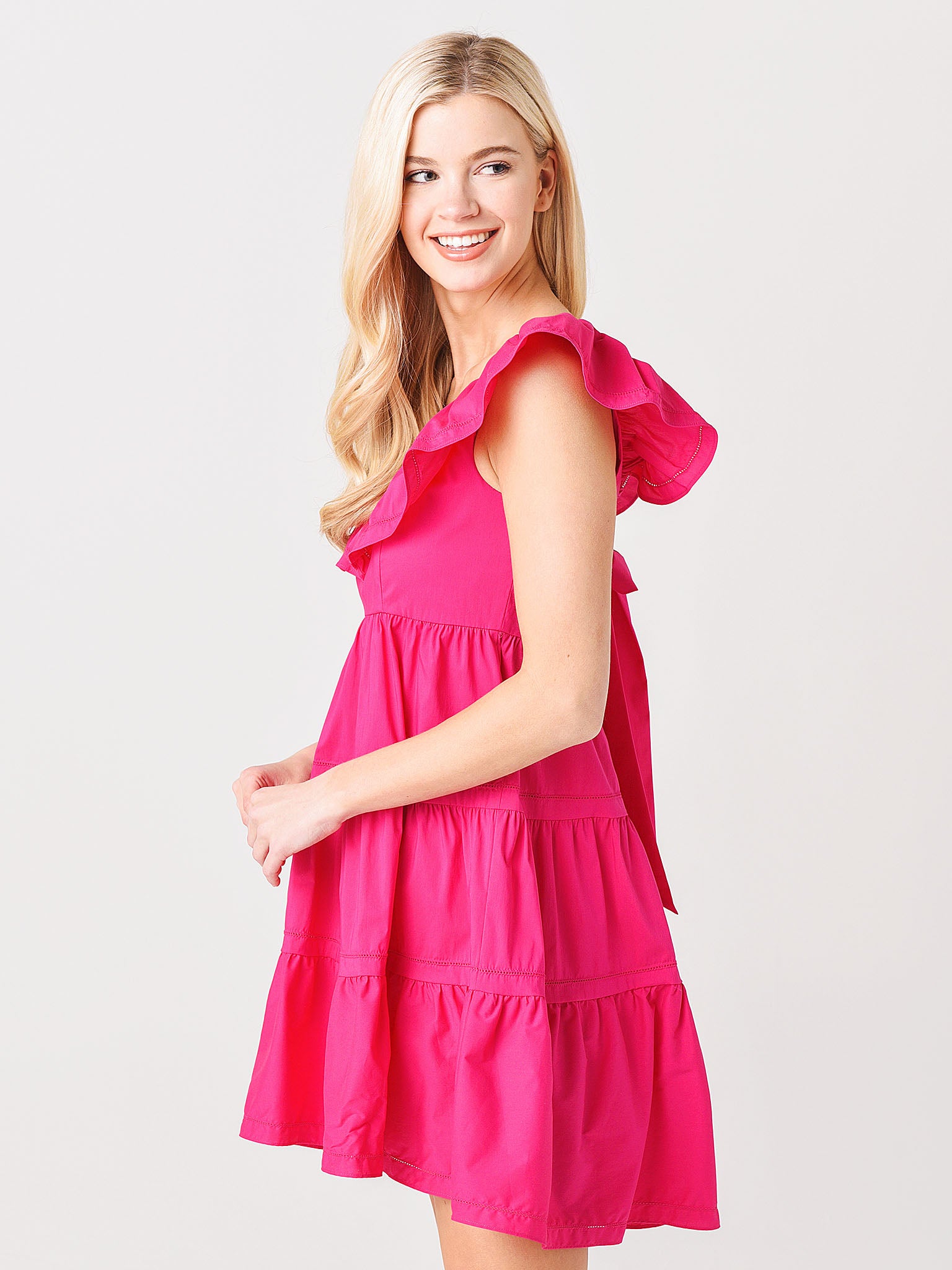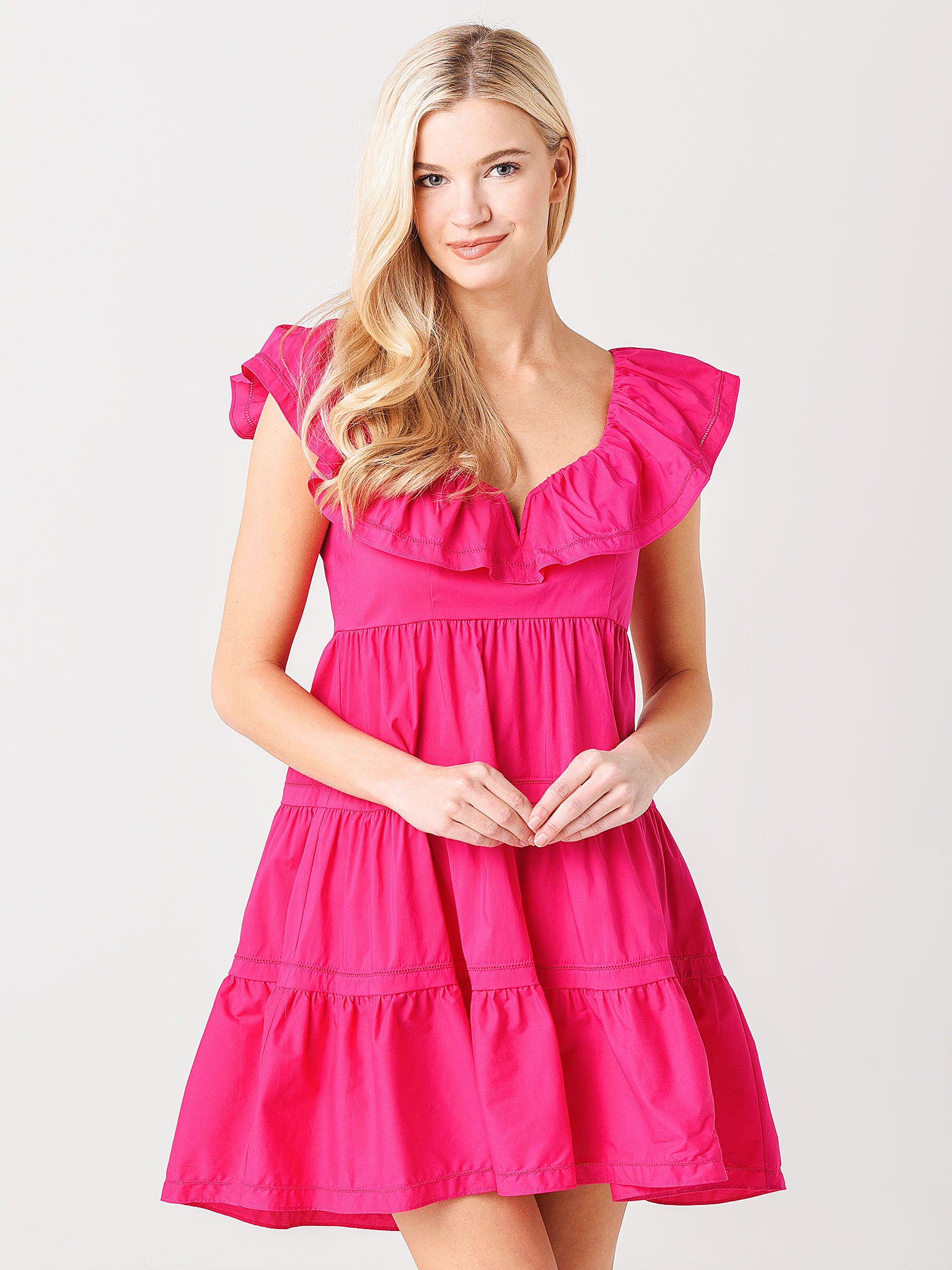 The Saylor Women's Karalyn Dress is an undeniable flirty number with ruffle detail, open back, and sweeping neckline.