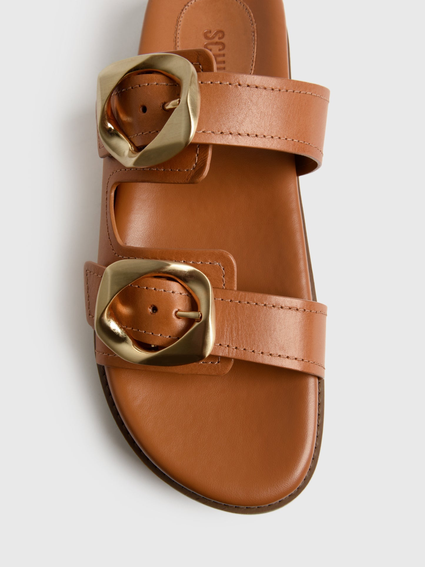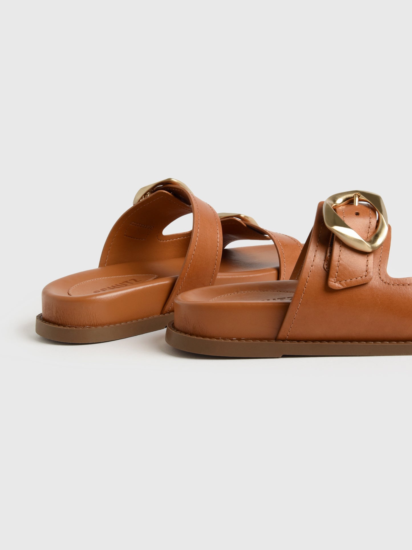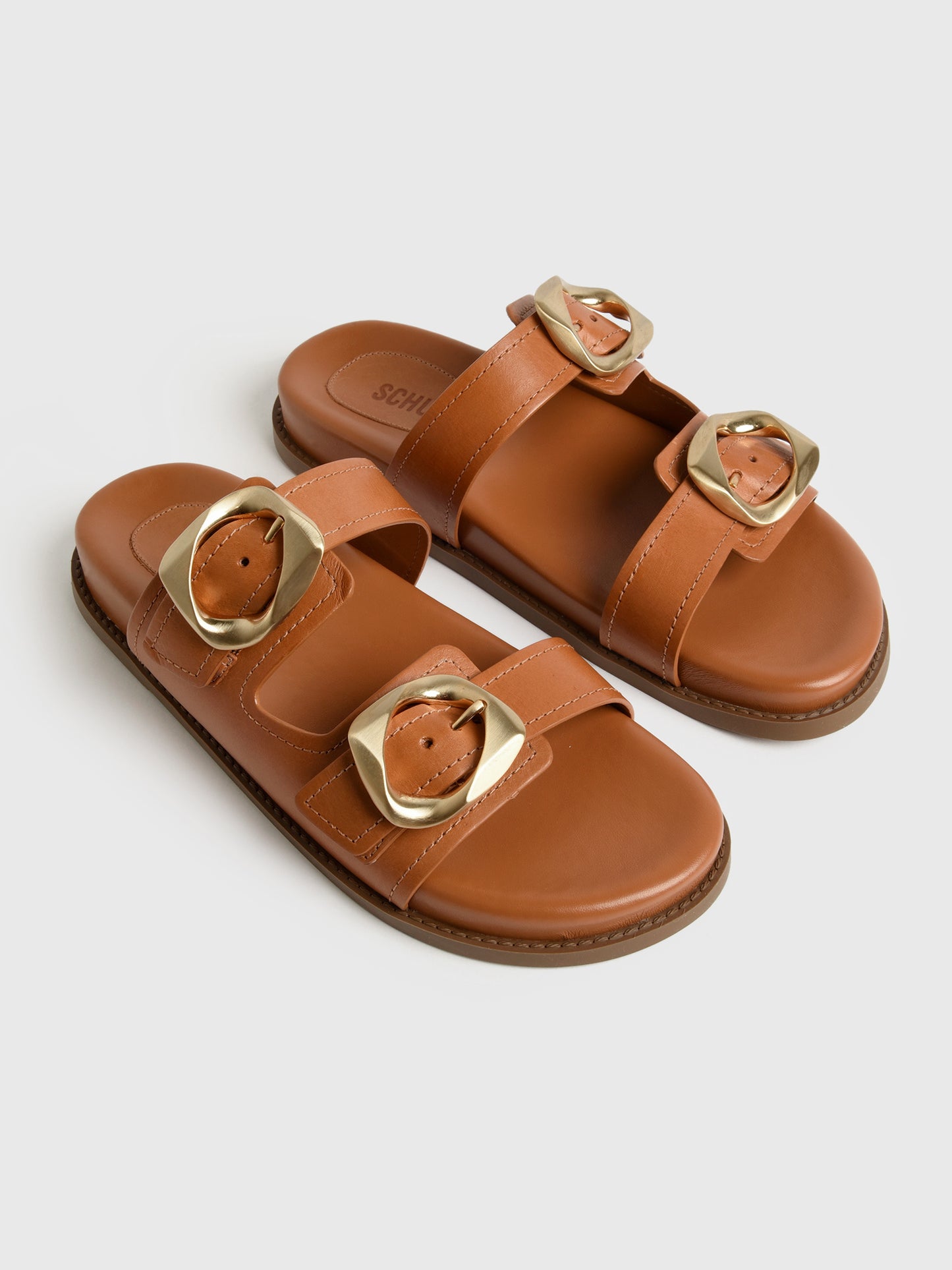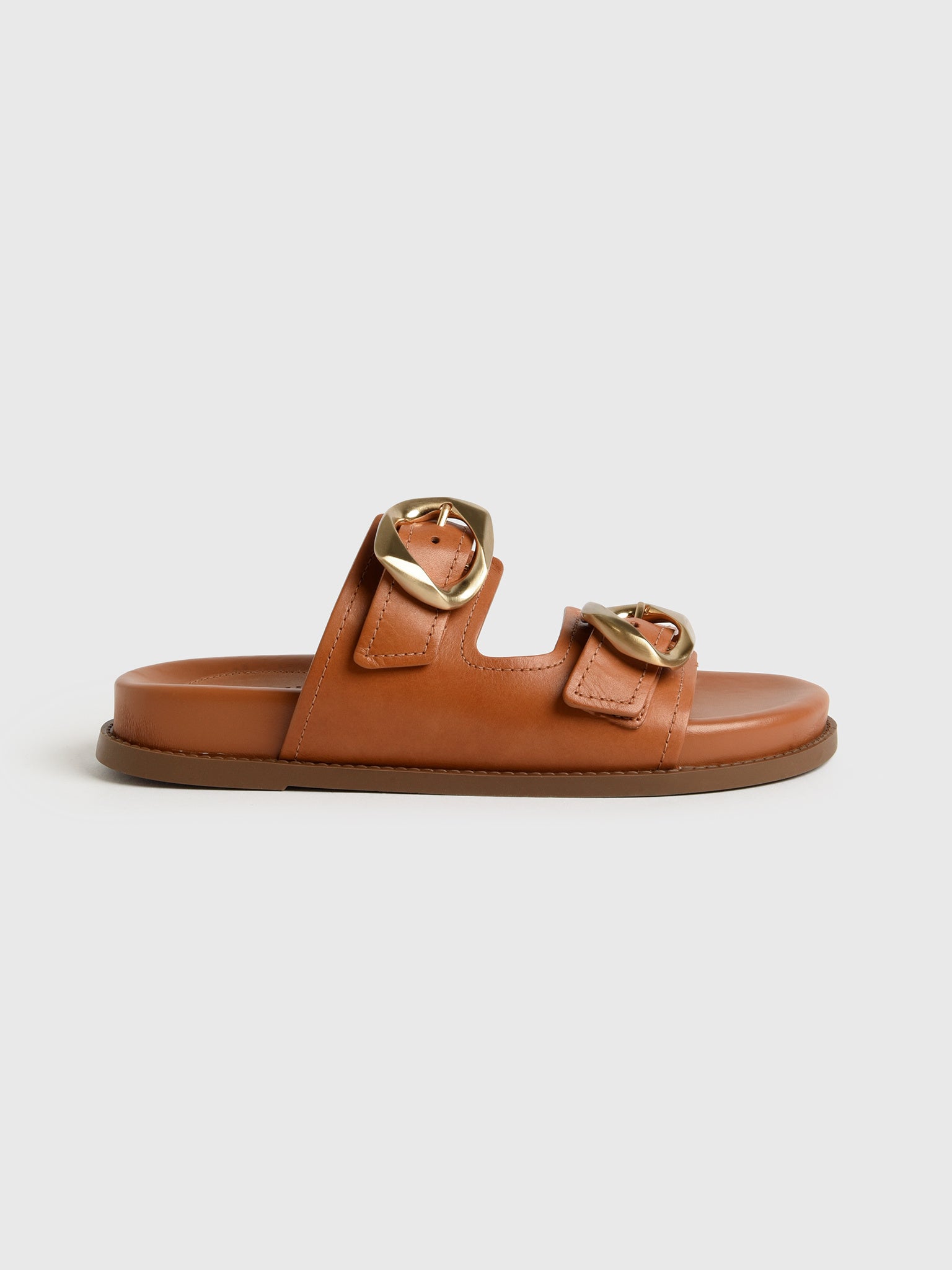 Elevate your casual style with these easy slides. They prove that comfort doesn't have to be boring, thanks to luxe gold hardware that adds an unexpected touch of sophistication.