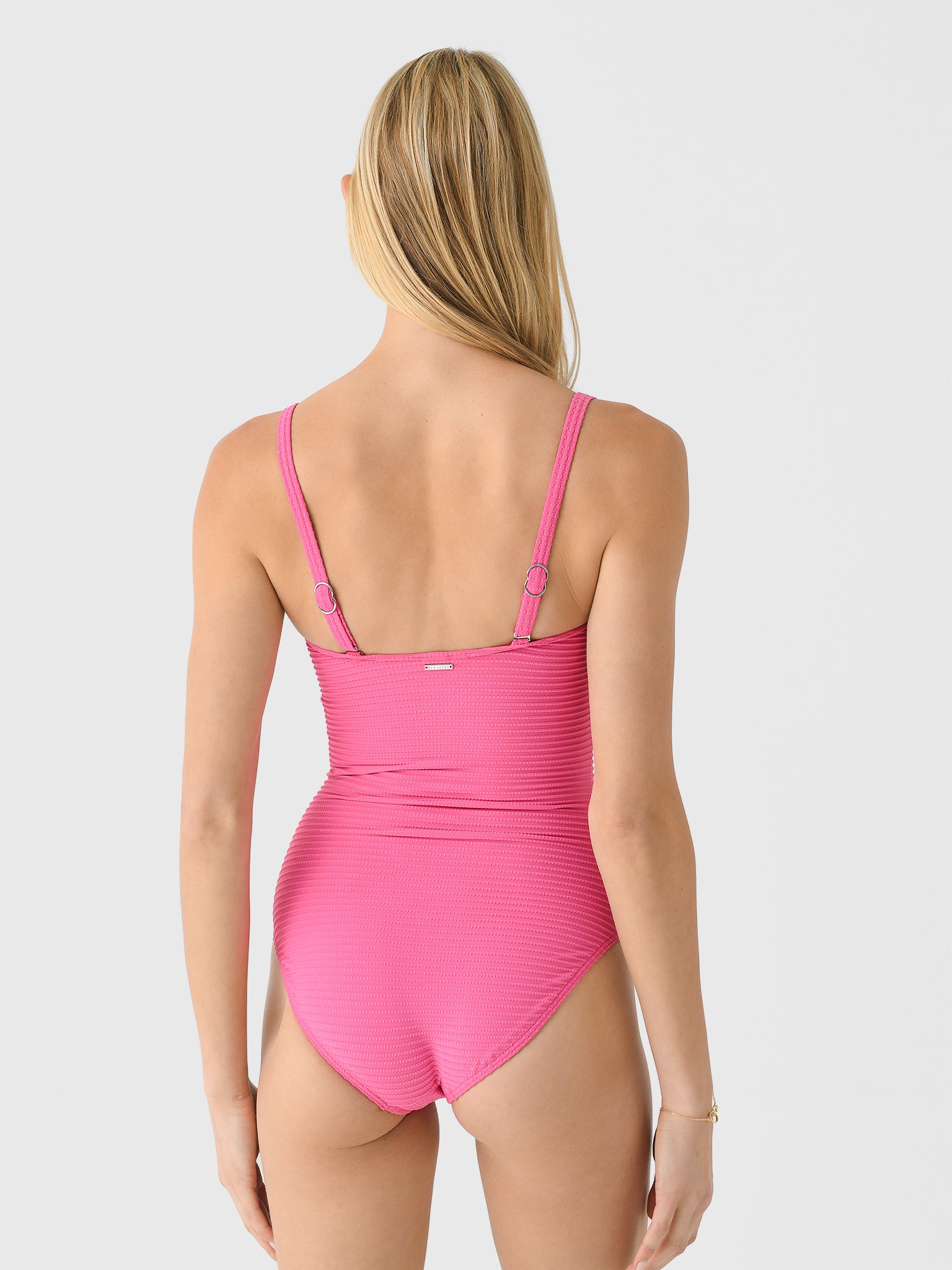 A comfortable one-piece swimsuit made from soft textured fabric and finished with optional straps and a U-wire detail.