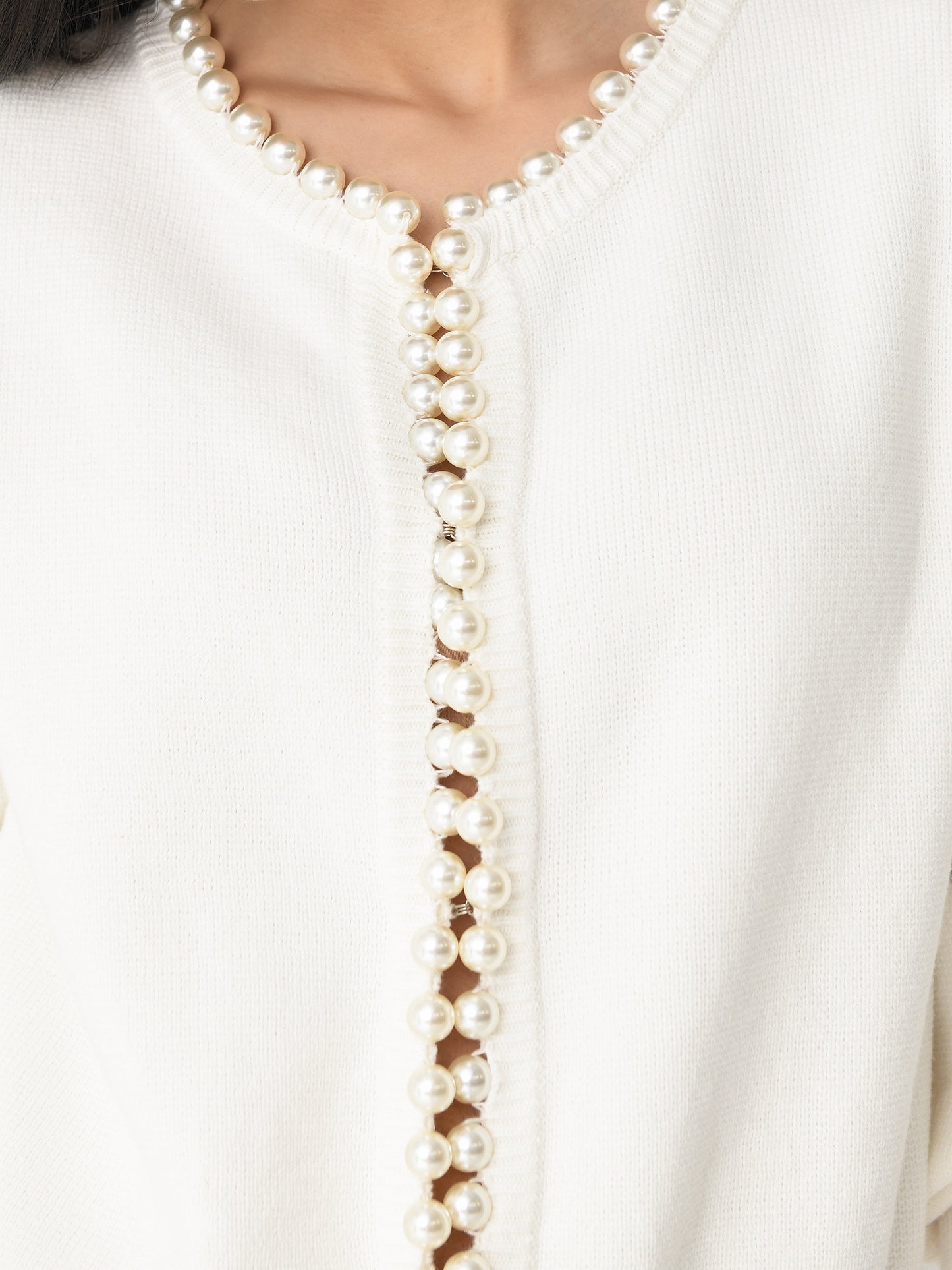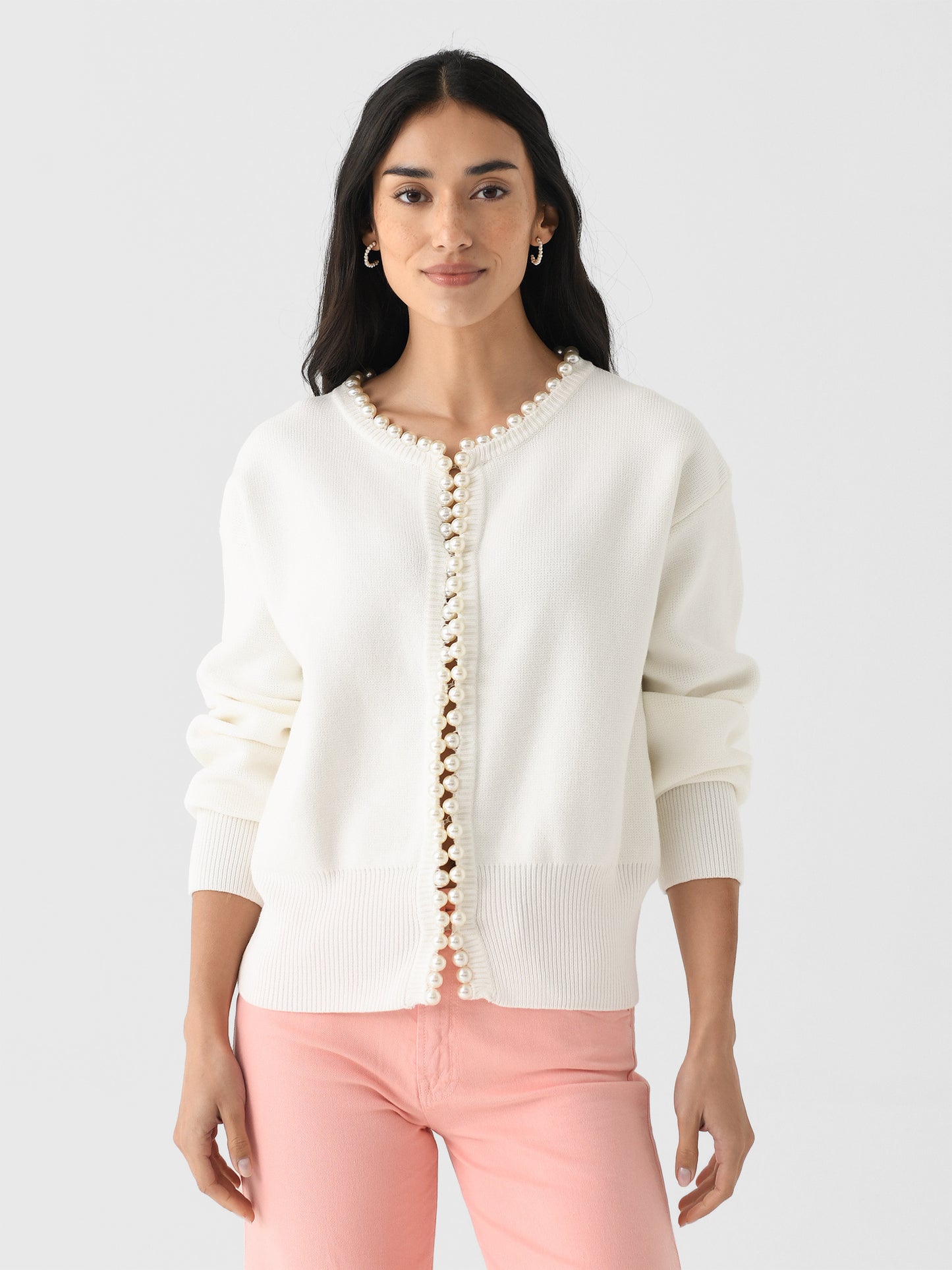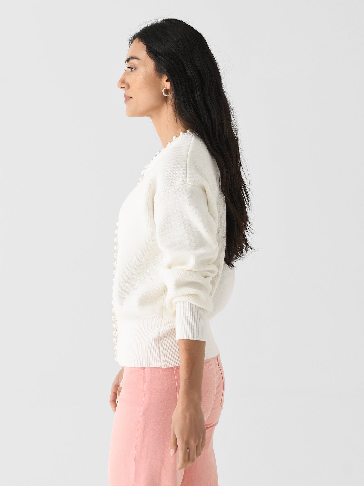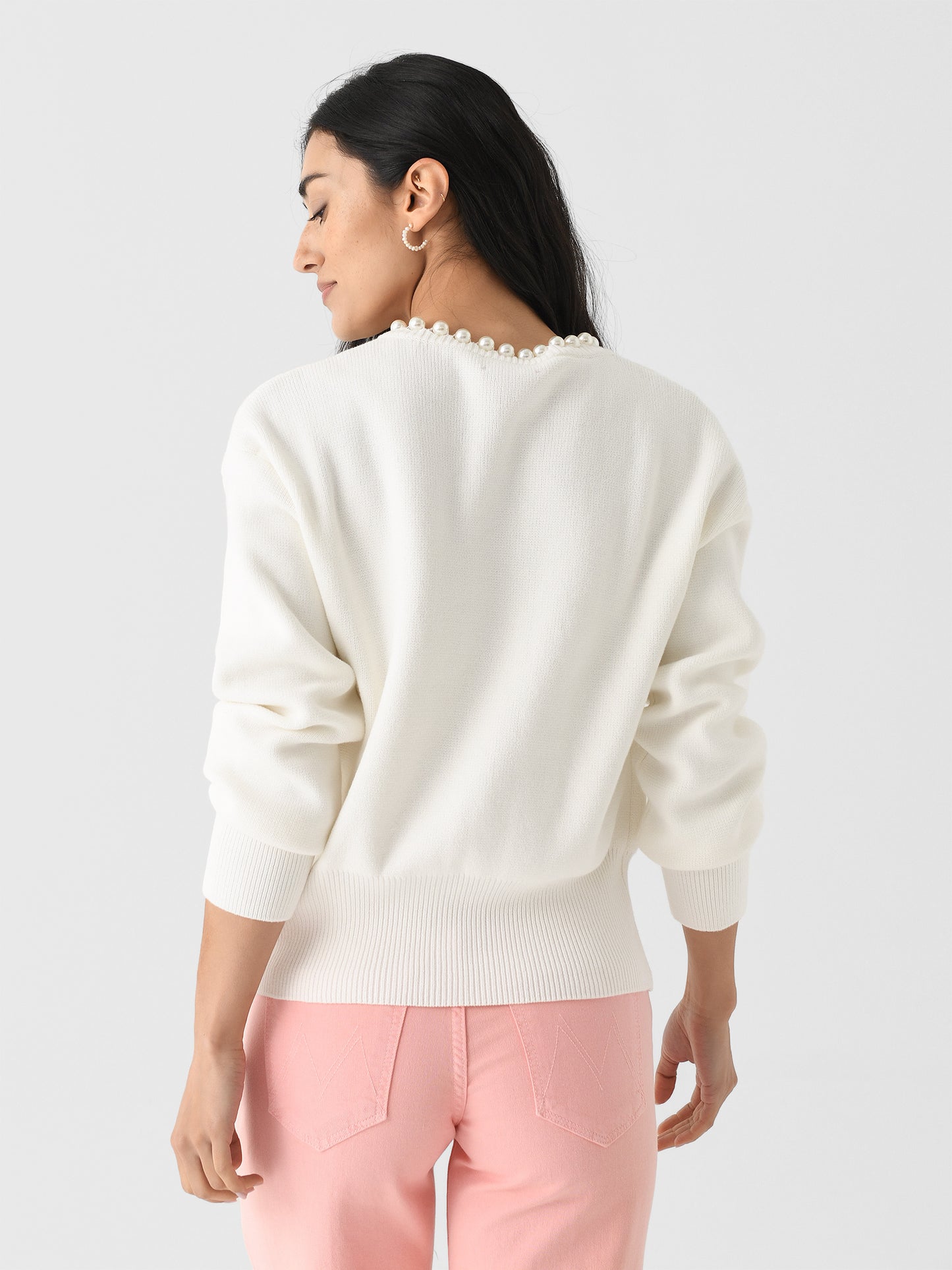 This sophisticated sweater is made from a soft organic cotton blend and features an elegant pearl trim.