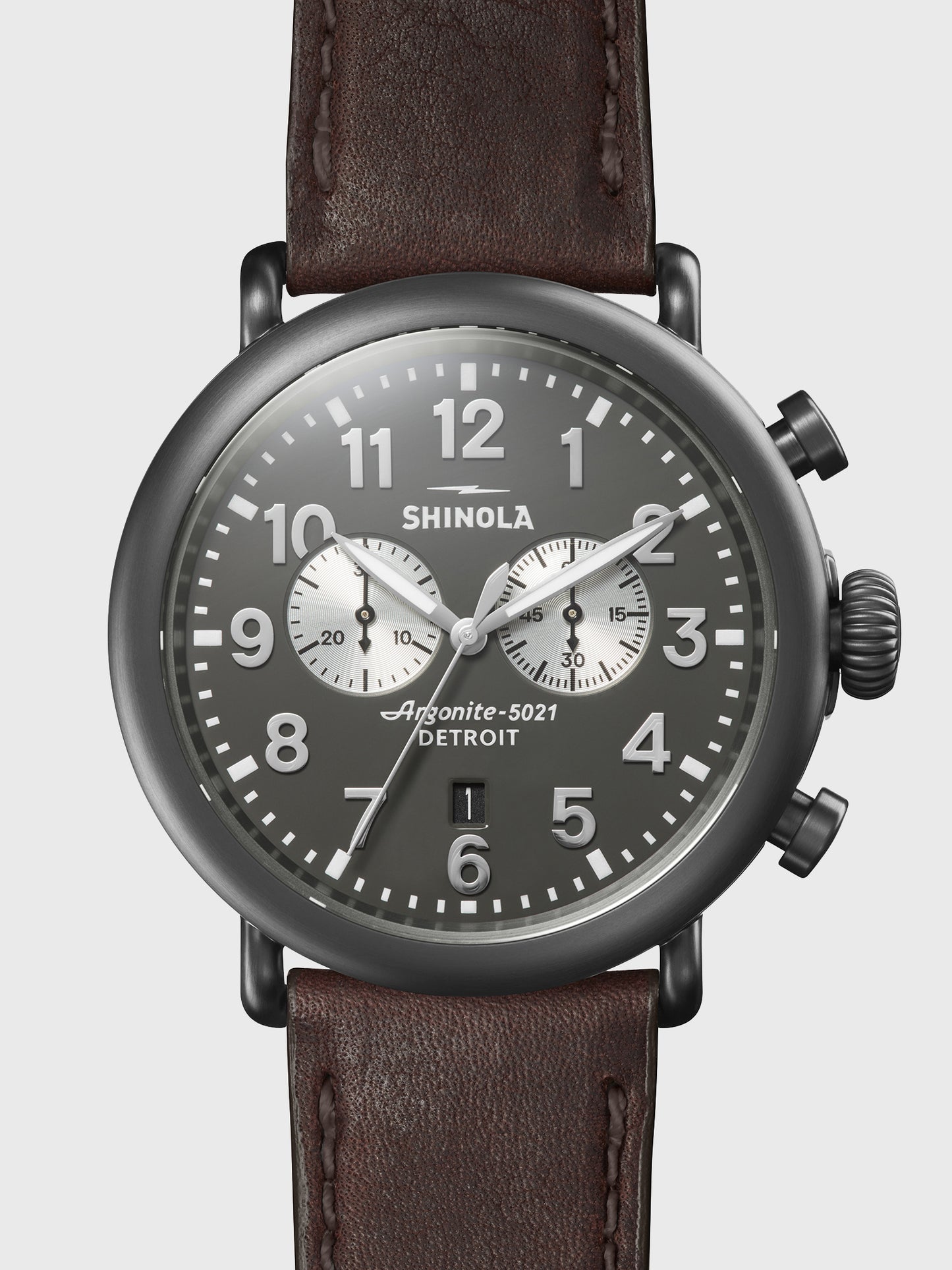 There's a reason why the Shinola Men's Runwell Chrono 47MM Watch is named so, it is built to last, looks rugged and works hard. A true timepiece you can't go without.