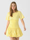 This effortless mini dress features a combo knit design with a voluminous bubble hem.