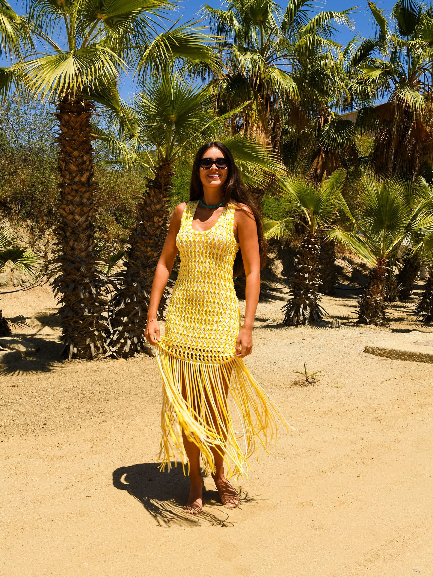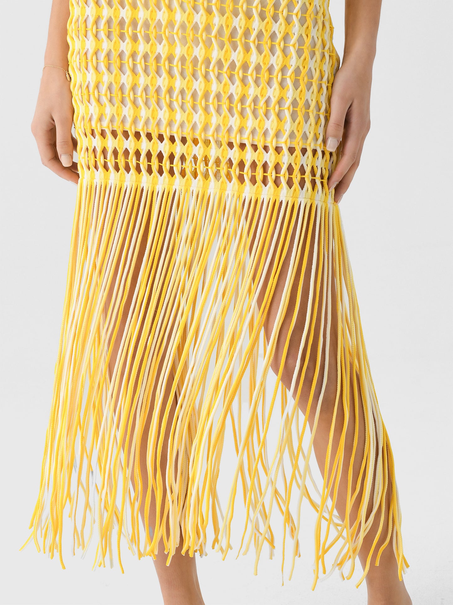 This statement piece features unique open twist fringe detailing for dynamic movement and a captivating textural appeal.