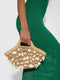 This mini tote is made from paper raffia and features natural shell embellishments.