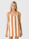 A casual mini dress made from striped denim fabric with a boxy silhouette.