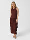 A sleeveless maxi dress made from ribbed fabric with layered fringe details for a touch of playful movement.