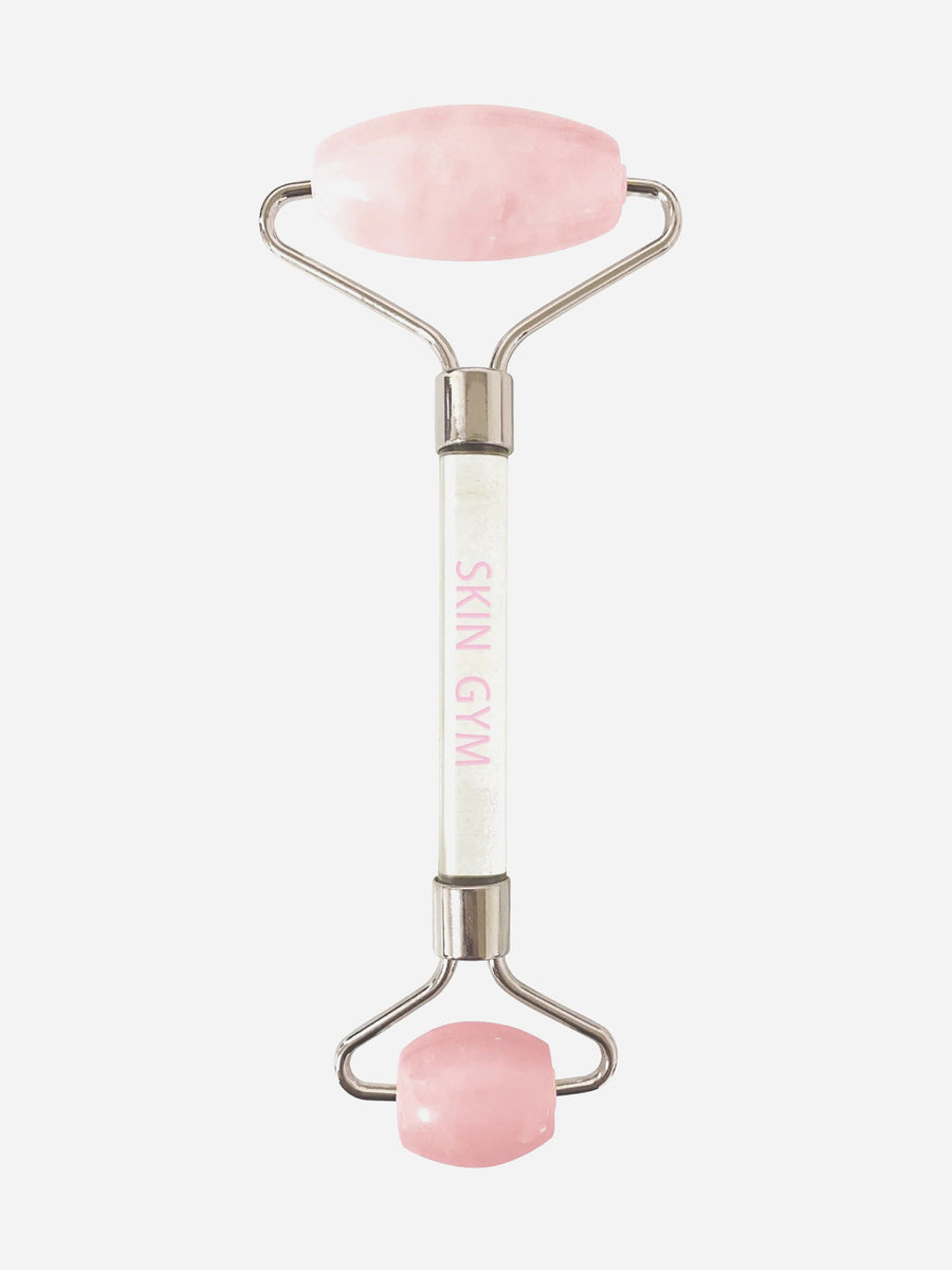 A rose quartz facial roller designed to help release tension for an improved glowing appearance.