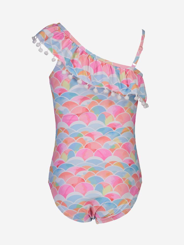 Girls' Rainbow Connection One Shoulder Frill Swimsuit