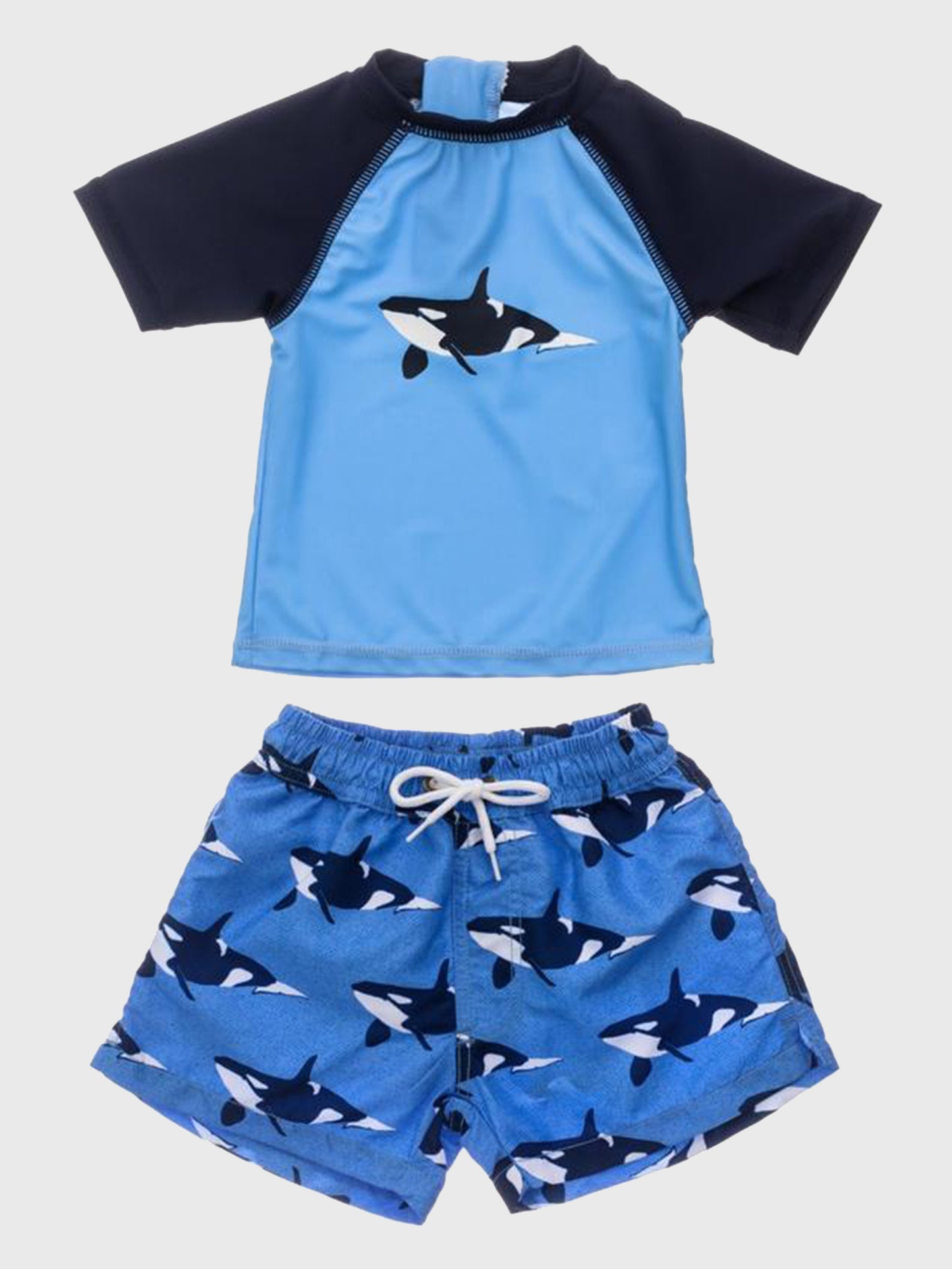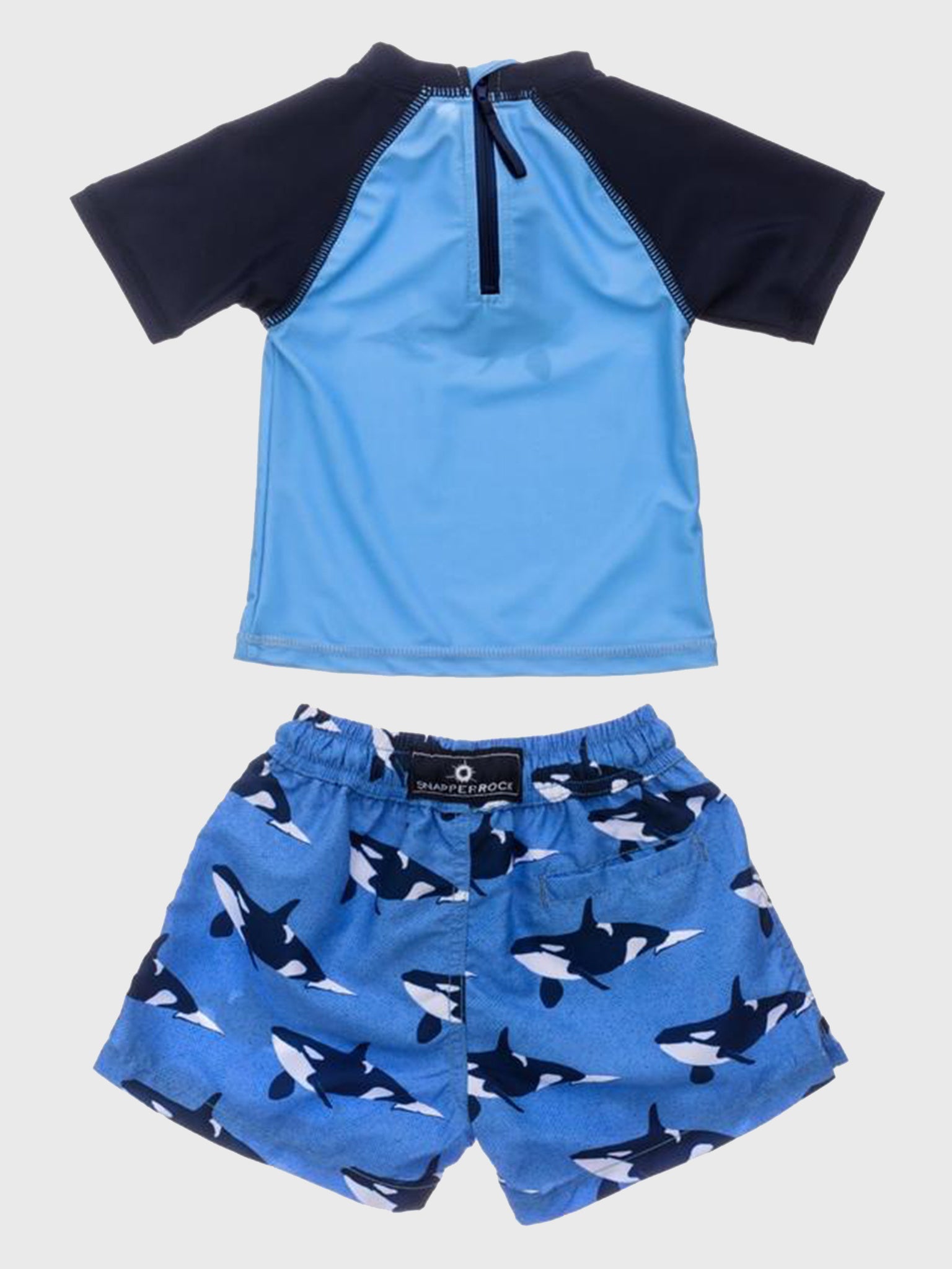 He’ll be safe from the sun and one with the sea in the Snapper Rock Little Boys’ Orca Ocean Swim Set.FEATURES: