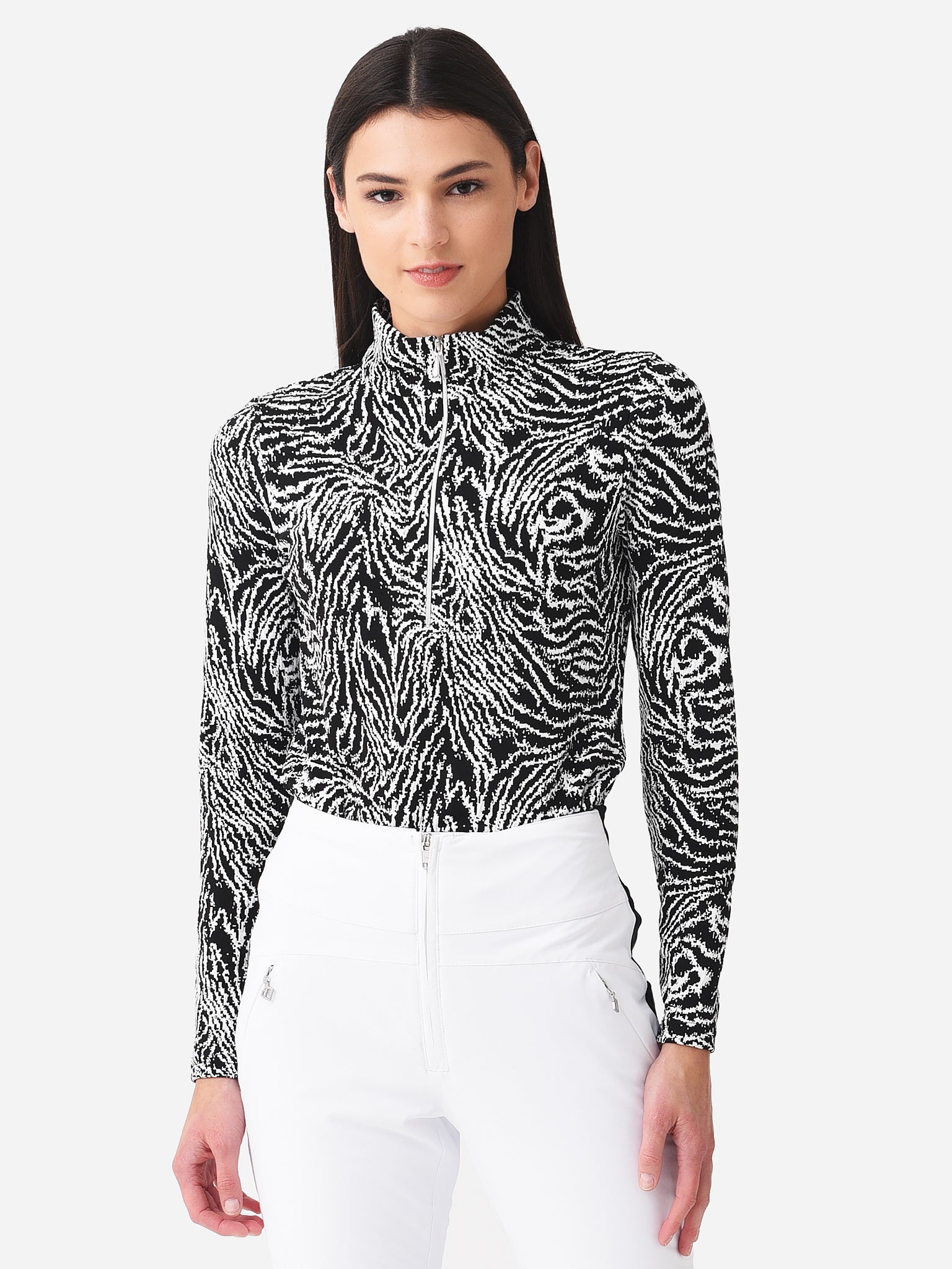 Women's Sport Jacquard Zip Neck Base Layer Top