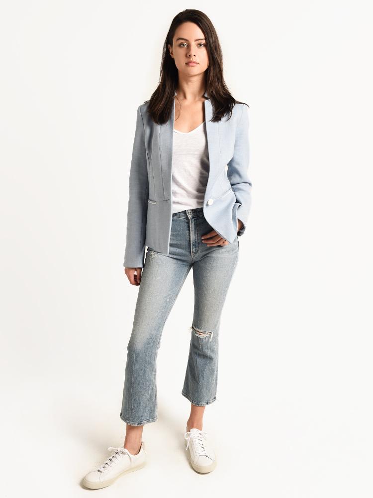 Styled with Stateside cami Style # 04-2310, Citizens of Humanity jeans Style # 1761-850 and Veja sneakers Style # EA2001W. Model is wearing size small jacket, size small tee and size 25 jean.