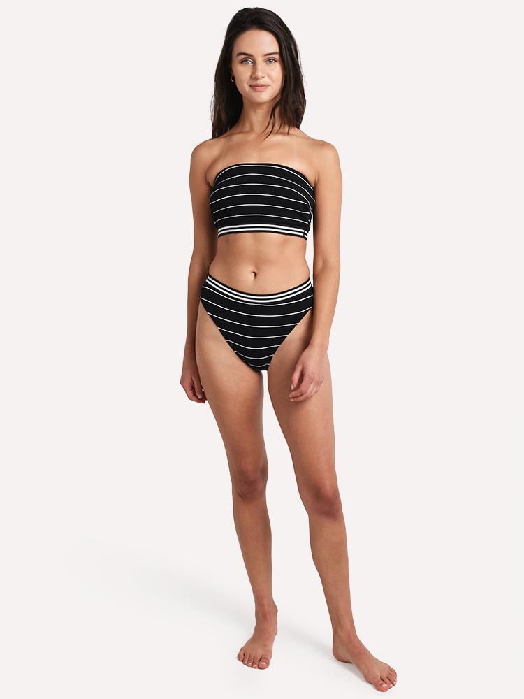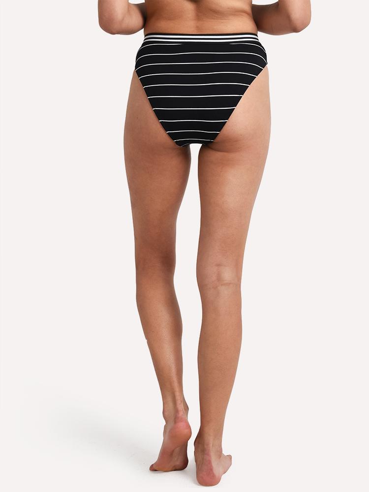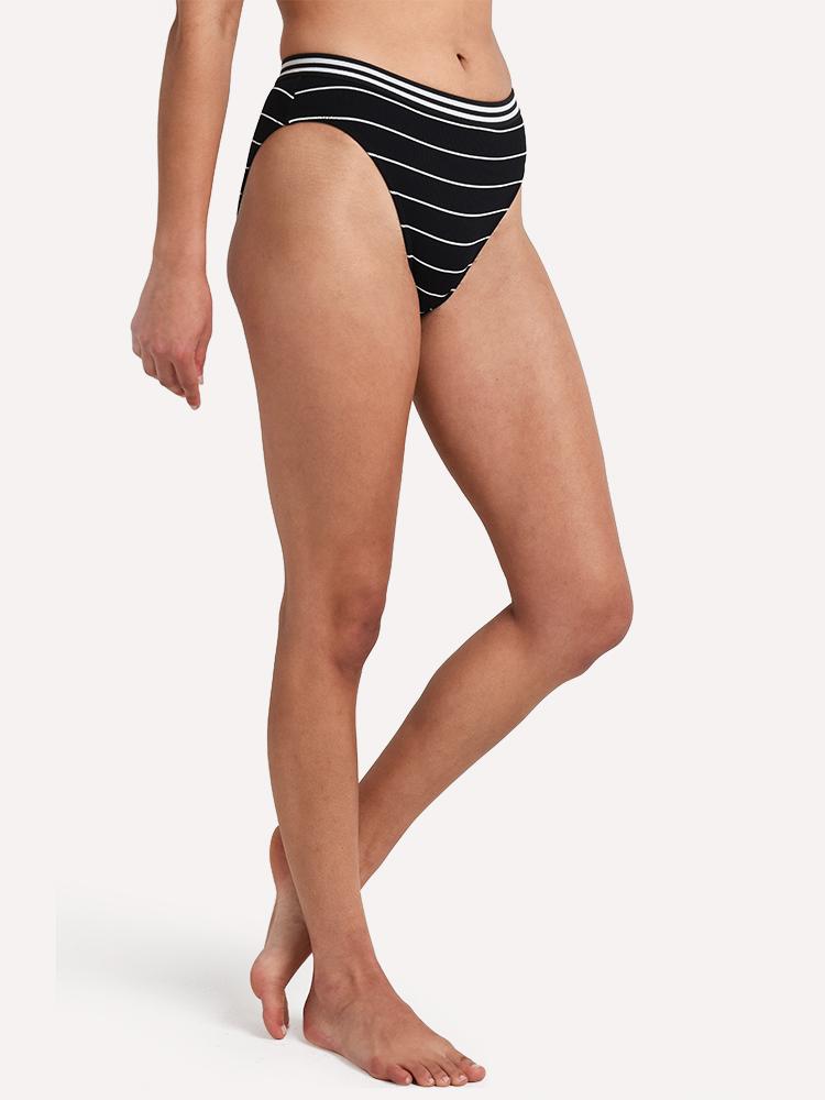 High rise bottom that offers moderate coverage. High cut at hips to elongate legs.