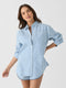 This versatile cover-up is made from crisp poplin shirting fabric and offers effortless styling with a modern stripe design.