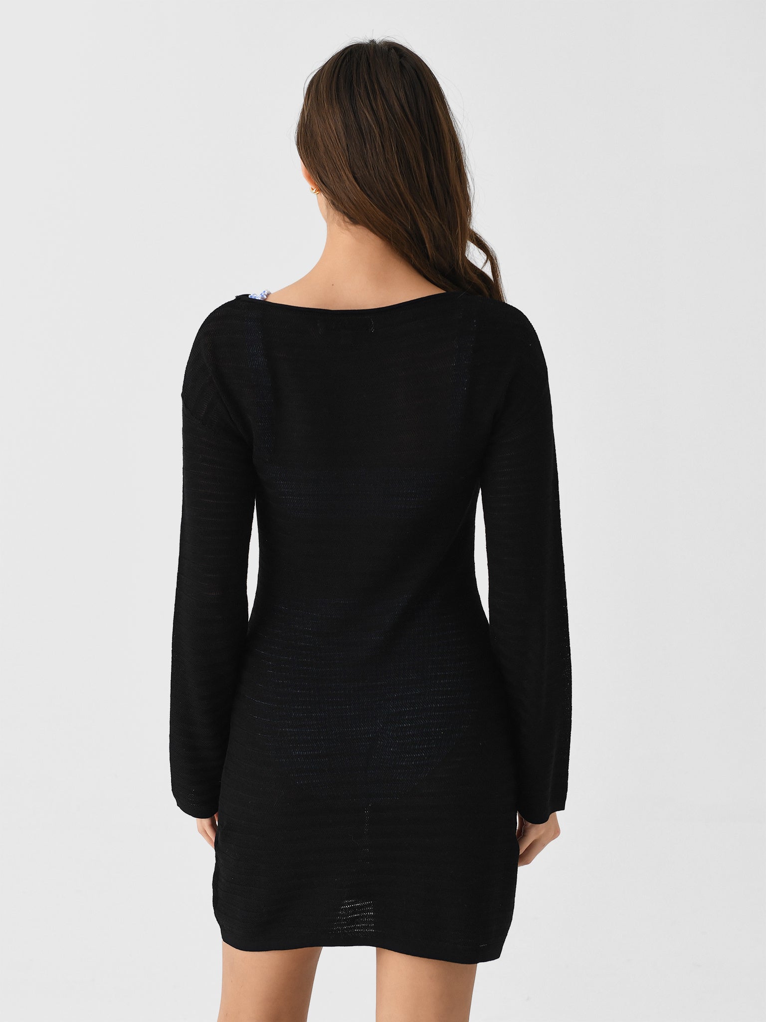 This long-sleeve cover-up features a sophisticated design with a racked rib stitch and horizontal rib pattern, crafted from exceptionally soft fabric for a comfortable, draped fit.