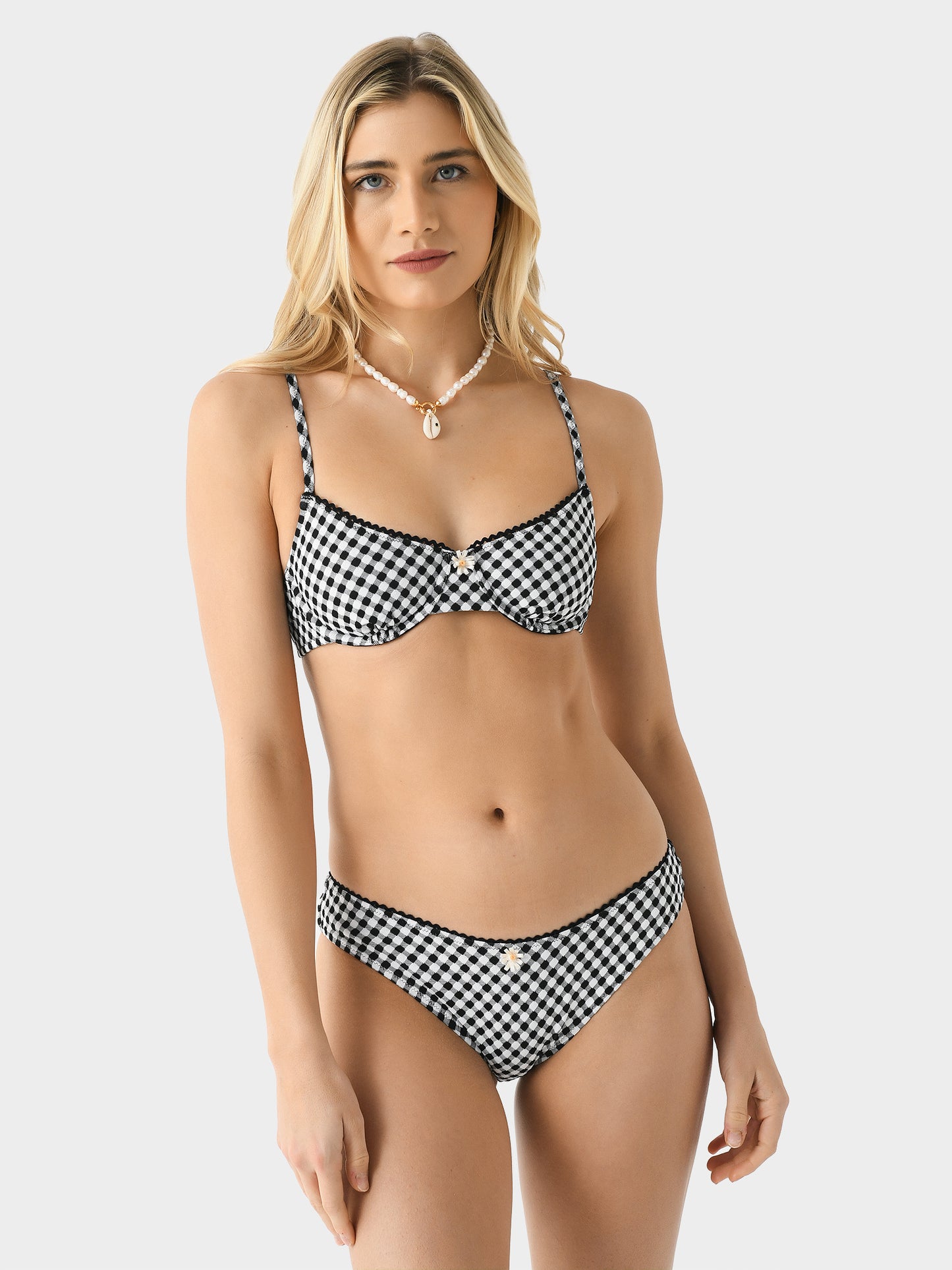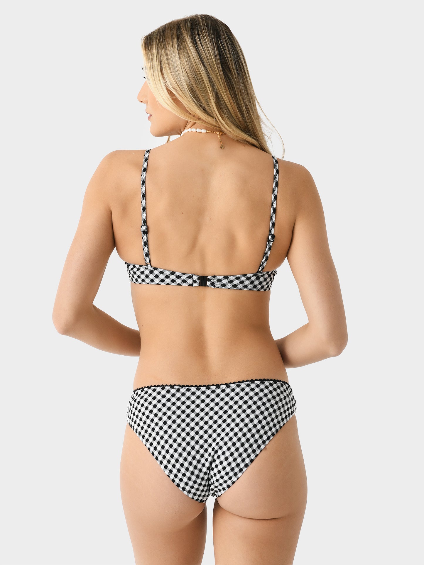 - Model is wearing size Small bikini top.