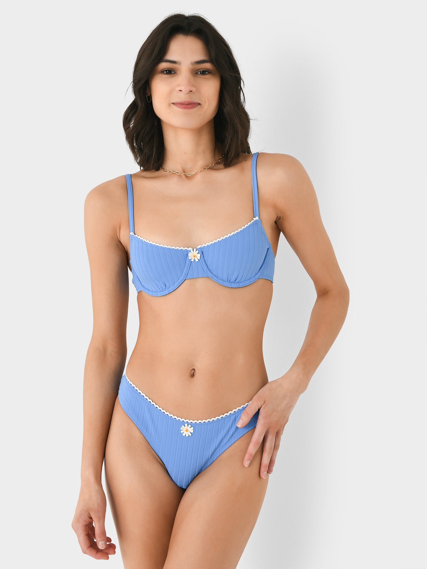 A 90s-inspired underwire bikini top made from soft ribbed fabric.