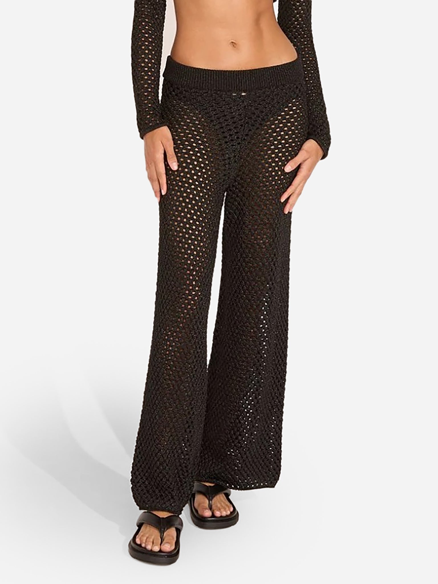 A wide-leg cover-up pant constructed from a sparkling knit fabric.