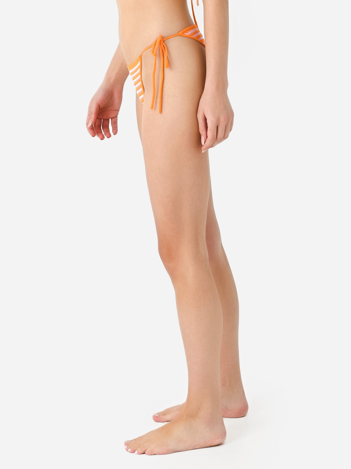 Crochet bikini bottom with adjustable side ties.