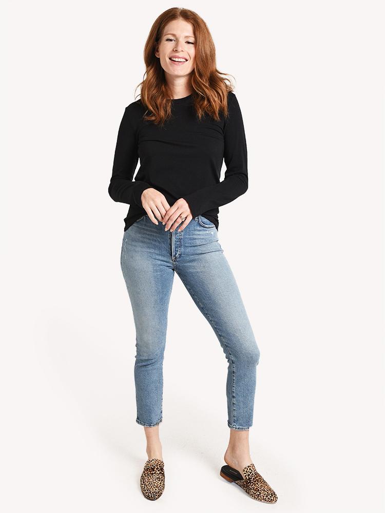 - Styled with Citizens of Humanity jean style # 1728C-1140 and Kaanas shoe style # M00038N. Model is wearing size Small tee and size 26 jean.
