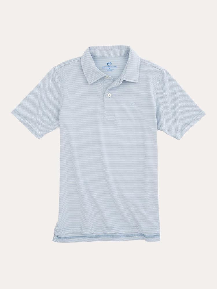 The Southern Tide Boys' Fairway Dunes Stripe Performance Polo is perfect for hot summer days with its' quick dry fabric.
