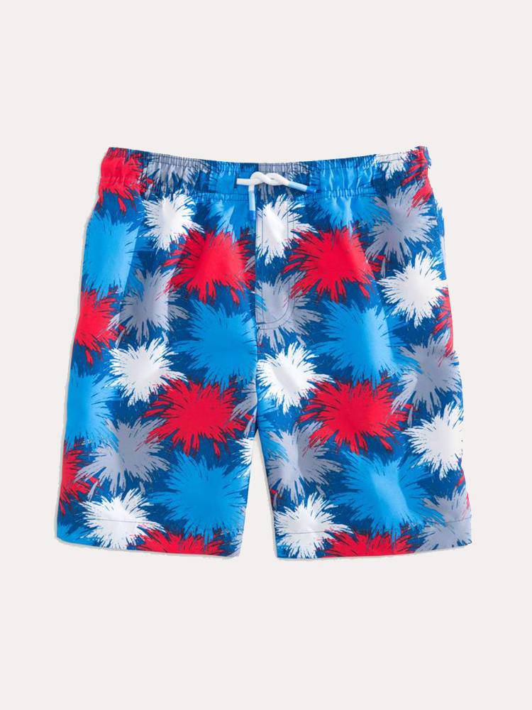 Be 4th of July ready in the Southern Tide Boys' Fireworks Swim Trunk.
