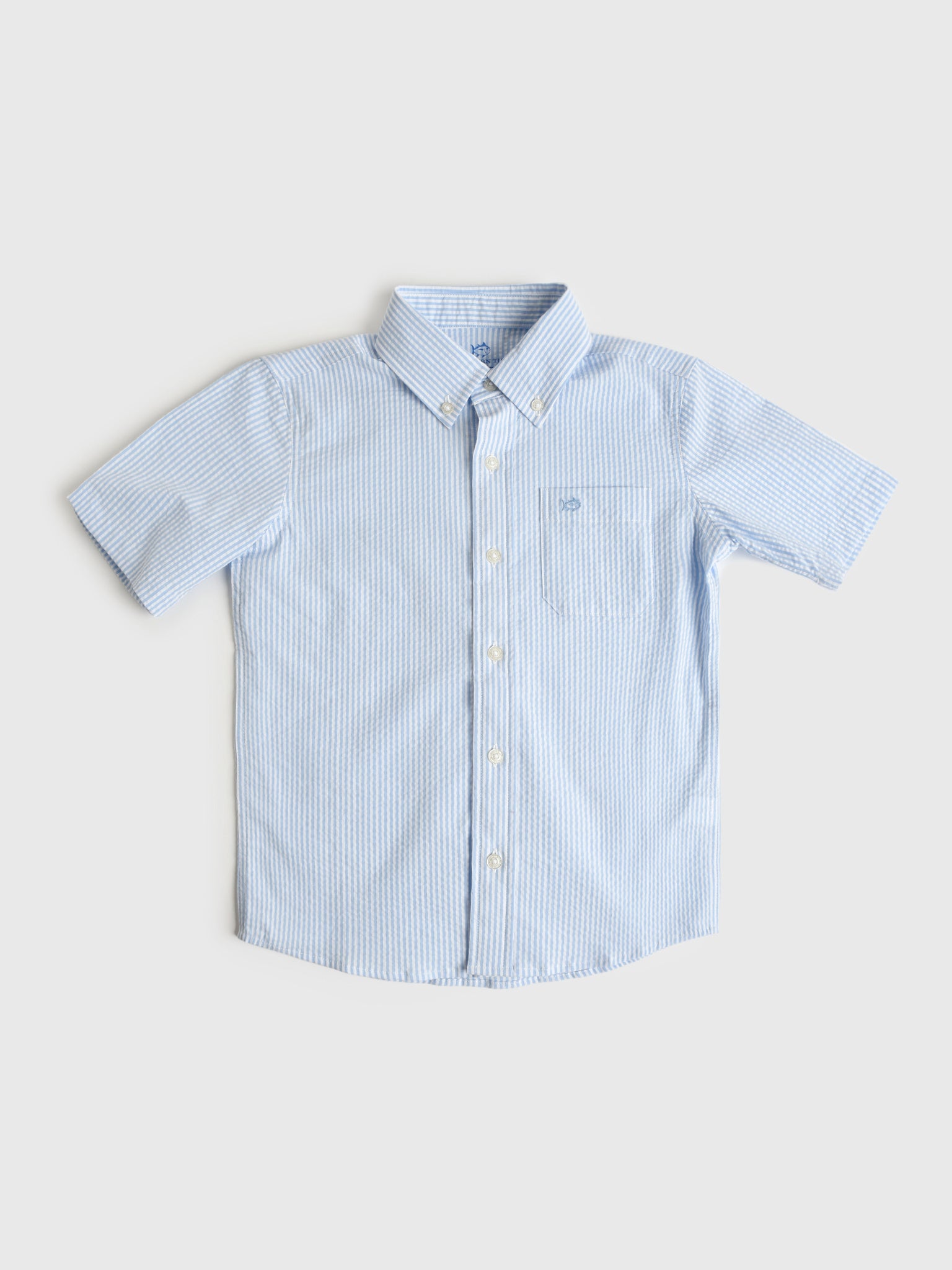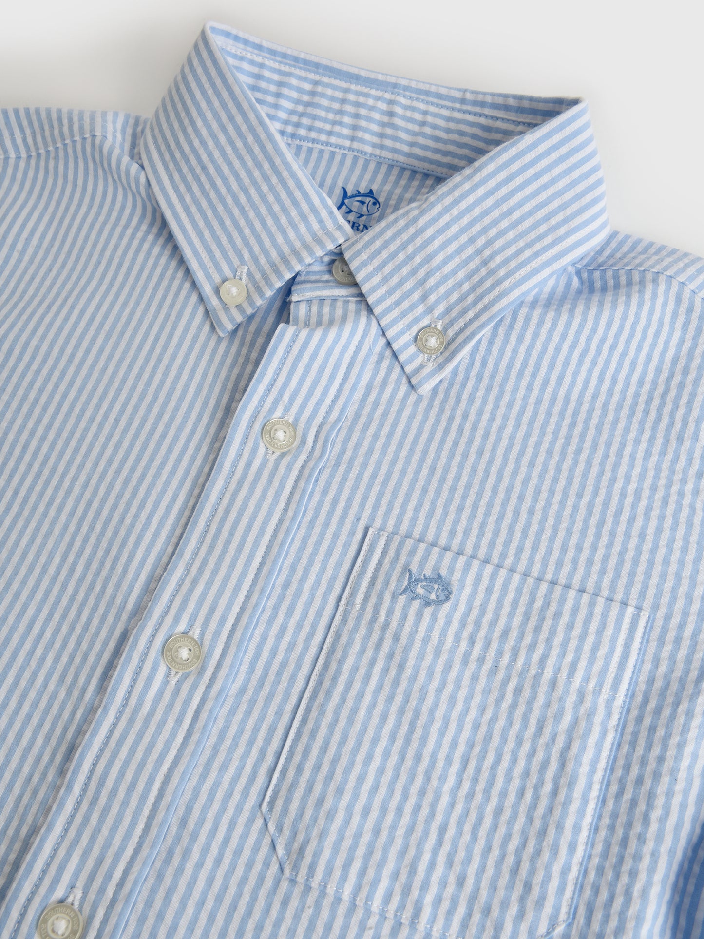 Southern Tide Boys' Folly Field Seersucker Short Sleeve Sport Shirt