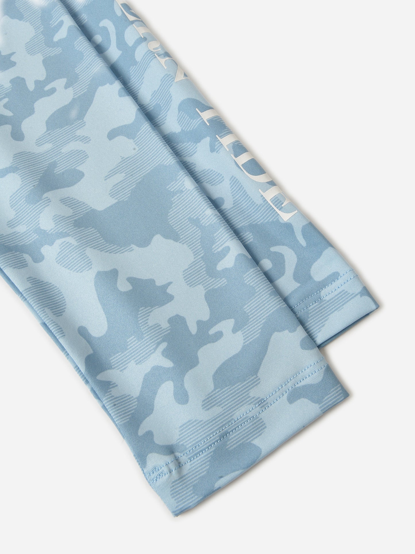 A breathable, long-sleeve tee made from lightweight performance fabric with a custom camo print.