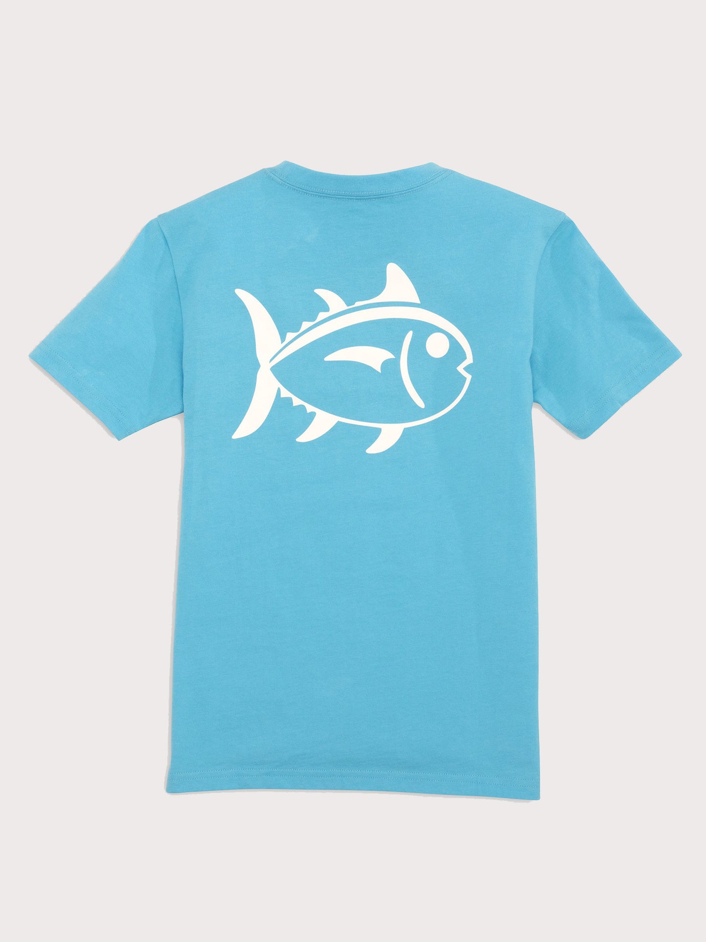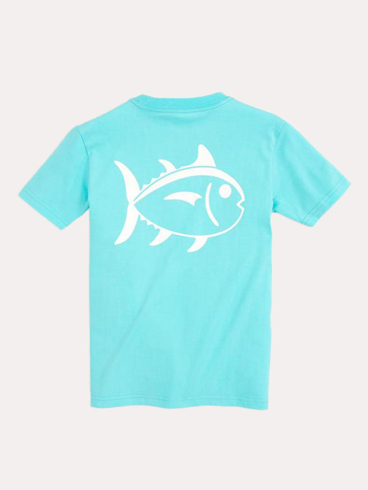 - Skipjack Graphic on Back and Southern Tide Monogram on Left Chest