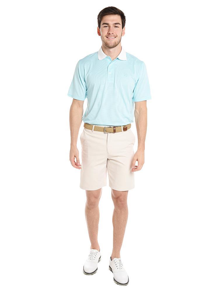 - Styled with Peter Millar shorts Style # MC0EB82. Model is wearing size medium polo and size 32 short.